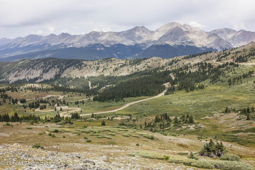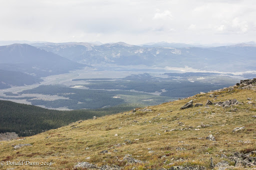 Wayne had told us about a campground, River’s End at Taylor Park Reservoir, and it exceeded his description; the reservoir is shown near the center of the photograph. He had stayed at one of the great sites along the river, and the upper campsites overlooking both the river and the reservoir were incredible, especially when the cost is $0; wow! It would be a great place to spend the hot months of summer. One negative, however, is that we could not get a Verizon cell signal. While driving around the area, we noticed a lot of ATVs creating lots of dust. Of course, this is Friday of Labor Day weekend. On our return, a drizzle began. The Cottonwood Pass road was bumper to bumper from east to west with cars and trucks pulling trailers loaded to the hilt with ATVs, RVs pulling trailers filled with ATVs, etc. Apparently, a nationally prominent ATV event was happening in the area. With the crowded conditions, we made a quick exit.
