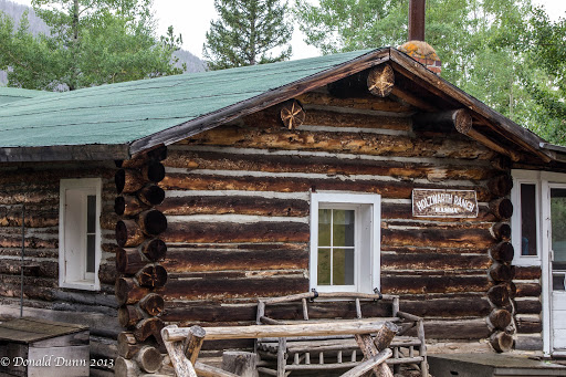We arrived early, before check-in time, and continued north to historic Grand Lake, and found this small resort town crowded with Labor Day weekend tourists. From there, we drove into Rocky Mountain National Park, and knew an animal was nearby because of the traffic jam. As we got closer, we saw a cow moose grazing along a nearby stream; she was obviously the star of the hour. We parked at the Holzwarth Historic Site parking lot, and walked the half mile to the site (despite occasional lightning and thunder), hoping to see some elk. Now, more about the Holzwarth Historic Site.