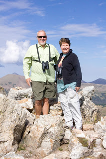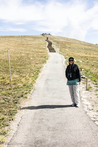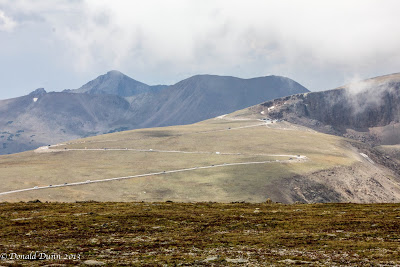 At the Alpine Visitors Center, we climbed several hundred stairs and walked a steep trail to the crest. Back down at the Visitors Center, we saw another bull elk and his harem in a high valley just below the Visitors Center. As we neared the east gate, traffic became noticeably heavier, and Estes Park was bumper to bumper with Labor Day weekend traffic; we stopped only long enough to buy a sandwich, and began our return back up the mountains. At Rock Cut Overlook we climbed the half mile Tundra Communities Trail to a high promontory where we again saw a bull elk and harem in a high valley, several ptarmigan, and a couple yellow-bellied marmots. On the descent on the west side, we saw the cow moose again, and stopped for a few photographs.