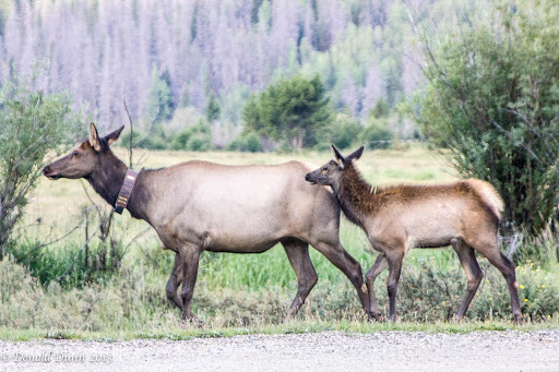 Up early, Kay and I drove into RMNP for a couple short hikes and possible wildlife viewing. Along the way, we saw our first large group of pronghorns near Grand Lake; the absence of seeing these abundant animals on this trip has surprised us and this is only the second group we’ve seen. We drove along Trail Ridge Road hoping to see wildlife, and spotted a cow and calf elk near the Holzwarth Historic Site, and pulled into the parking lot for a better view. They came really close to us, but a truck pulling a flatbed trailer turned around in the parking lot, and the loud banging of the trailer scared them away.