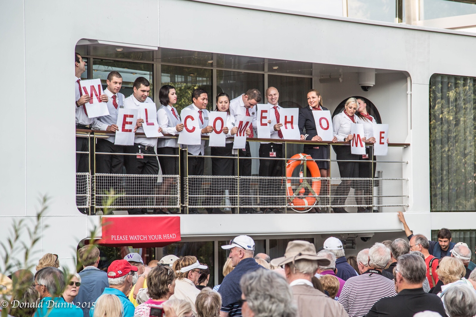 Thus far, we have been impressed with the quality and timeliness of service from the time we arrived in Amsterdam to the present—nothing one can put their finger on, but just the little things, like the captain assisting with initial boarding by carrying luggage, or the “Welcome Home” sign held by several of the staff when we arrived back from a shore excursion.