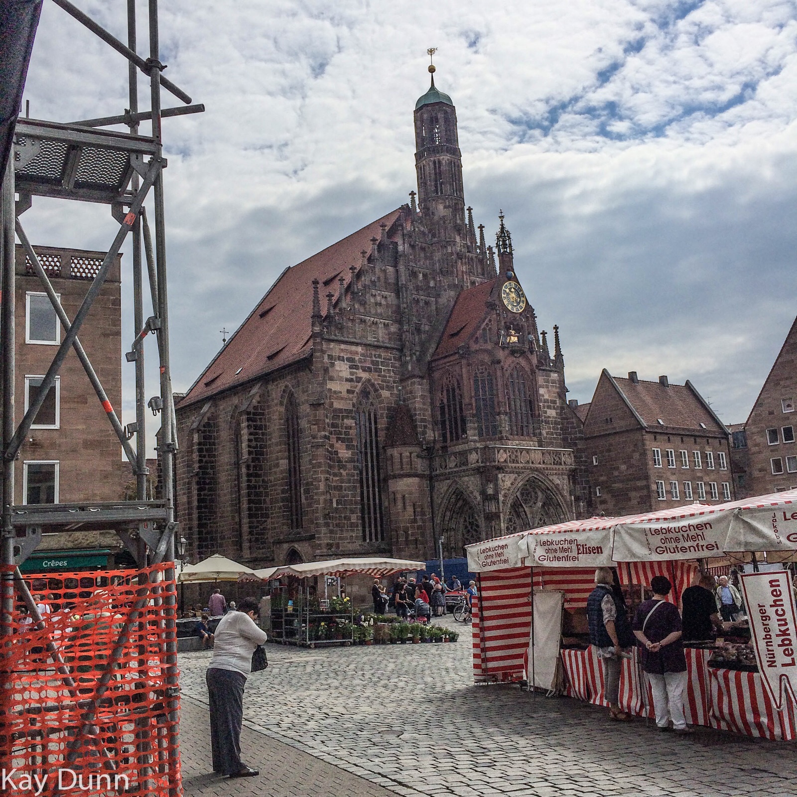 Nuremberg today is a city of multiple layers—a railway hub, 80 Gothic towers in the visual profile, Mastersingers tradition with an impressive Opera House, many impressive buildings demonstrating the German Renaissance influence, and an active Market Square with many patio bistros lining the quiet lazy River Pegnitz which wanders quietly through the city.