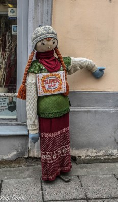 | Local Estonian selling wares at a store in Tallinn, Estonia |