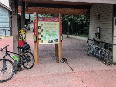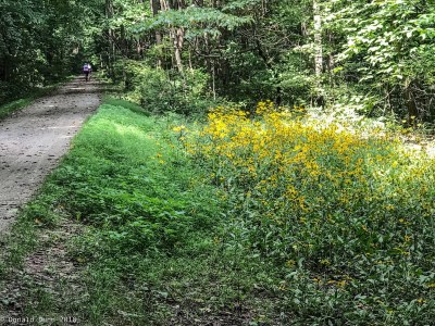 After breakfast, a shuttle back to Confluence, and with overcast skies, the day’s ride began at the Confluence trailhead—but no rain! We rode some 10.5 miles along the canopied trail at a frenetic pace of almost 12 mph, and with no stops—too fast to take many photos.