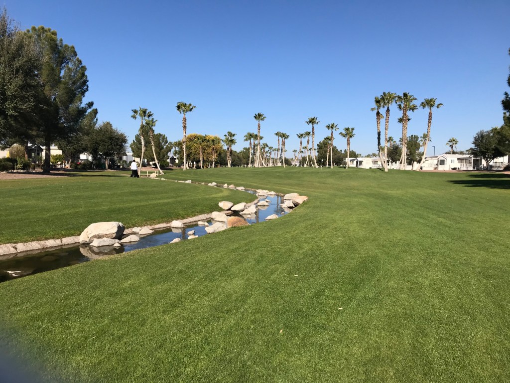 It’s difficult, if not impossible, to describe the number of activities and participants here at Palm Creek Golf & RV Resort in Casa Grande, AZ. Pickleball reigns supreme, and many residents come here specifically to play; the resort hosted the National’s for three years, before it moved to a larger venue nearby. Softball is huge, with games taking place every morning, all morning long. Pottery is also huge as is lapidary and silversmithing. Golf is very popular as well. There are numerous exercise and dance opportunities, first class entertainment, and cafes and grills. I attended a Photography Club meeting Monday AM and about 50 people were in attendance—they meet three times a week with various classes and field trips; Kay did Line Dancing. It’s tiring to even write about all that is happening here, and this doesn’t include all the national monuments and parks nearby!