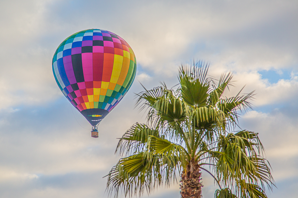After the long day on Saturday, we lazed about on Sunday morning, playing golf with the Hot Springs Village contingent in the afternoon. On Monday and Tuesday, Kay continued pickleball lessons and games while I worked on photographs taken Saturday. As the curtains and shades were opened Wednesday morning, we noted a colorful hot air balloon being inflated just a couple blocks down street, and before too long, it was up, up, and away. Little did we know that hot air balloons are a near everyday occurrence in southern Arizona.