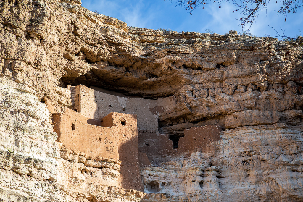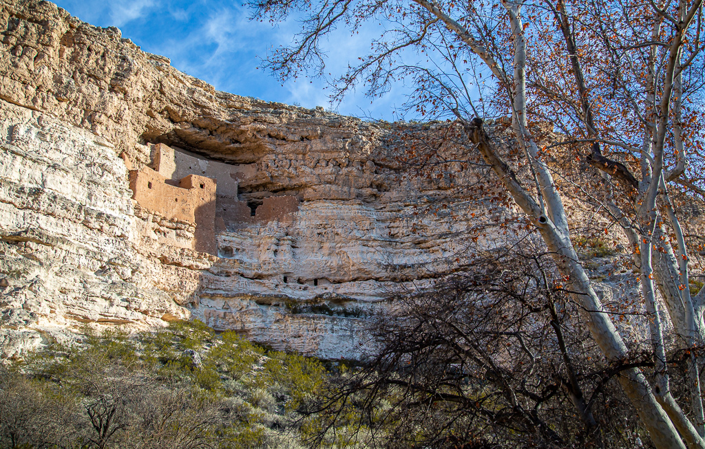 We opted not to return to the Sedona area on Sunday, and instead visited Montezuma Castle National Monument near Camp Verde. We arrived just after the doors were opened, avoiding any crowds that might venture a visit. Montezuma Castle National Monument protects a set of well-preserved dwellings located in Camp Verde, Arizona which were built and used by the Sinagua people, a pre-Columbian culture closely related to the Hohokam and other indigenous peoples of the southwestern United States, between approximately 1100 and 1425 AD. As one of the best preserved cliff dwellings in North America, this 20 room high-rise apartment, nestled into a towering limestone cliff, tells a story of ingenuity, survival and prosperity in an unforgiving desert landscape.