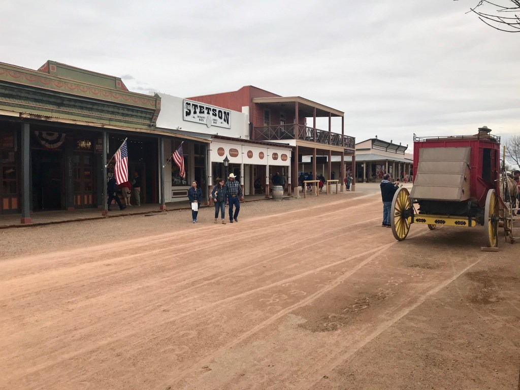With several hours of daylight remaining, we drove to Tombstone in Cochise County, Arizona, famous for Wyatt Earp and the Gunfight at the O.K. Corral. It became one of the last boomtowns in the American frontier, growing significantly into the mid-1880s as the local mines produced $40 to $85 million in silver bullion, the largest productive silver district in Arizona. Its population grew from 100 to around 14,000 in less than seven years. Under the surface (play on words?) were tensions that grew into deadly conflict. The mining capitalists and the townspeople were largely Republicans from the Northern states while many of the ranchers were Confederate sympathizers and Democrats. The booming city was only 30 miles from the U.S.–Mexico border and was an open market for cattle stolen from ranches in Sonora, Mexico, by a loosely organized band of outlaws known as The Cowboys. The Earp brothers—Wyatt, Virgil, and Morgan, as well as Doc Holiday, arrived in December 1879 and mid-1880. The Earps had ongoing conflicts with Cowboys and cattle rustlers Ike and Billy Clanton, Frank and Tom McLaury, and Billy Claiborne. The Cowboys repeatedly threatened the Earps over many months until the conflict escalated into a shootout on October 26, 1881. The historic gunfight is often portrayed as occurring at the O.K. Corral, though it actually occurred a short distance away in an empty lot on Fremont Street. This is definitely a tourist trap offering so much potential, but falling far short in every category except souvenir shops.