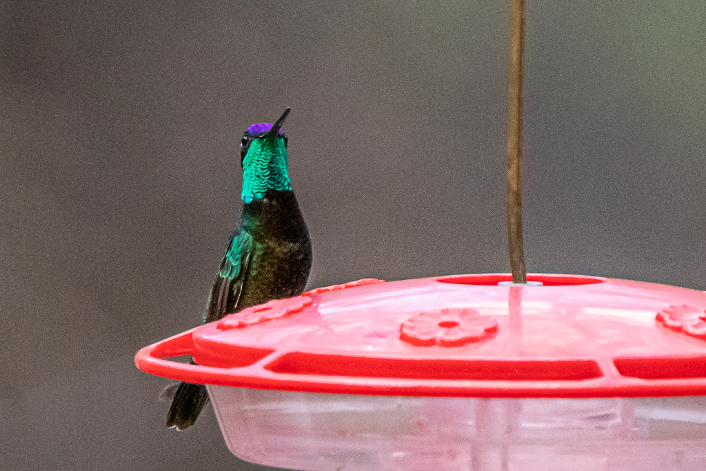 From San Pedro Riparian National Conservation Area, we drove to Ramsey Canyon, another sub “life list” item. The Nature Conservancy’s Ramsey Canyon Preserve is known among birders as one of the best “hummingbird places” in the US. We hiked much of the trail, and enjoyed watching the occasional hummingbird feed at one of the many feeders present. Even though August is the prime month, Kay and I were able to spot and photograph a Calliope Hummingbird in the cold, windy weather.
