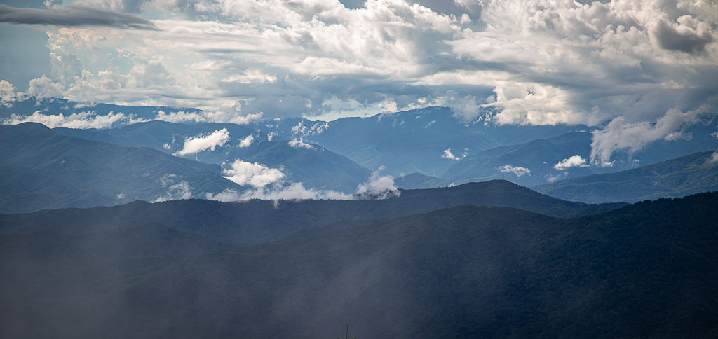 We have always enjoyed visiting the Blue Ridge Parkway, having first seen it in the late 1970s on a cross-country ski trip, even spending some time skiing on it. Subsequently, I have driven it several times and with Kay a couple of times. Begun during the administration of President Franklin D. Roosevelt, the project was originally called the Appalachian Scenic Highway. Work began on September 11, 1935, near Cumberland Knob in North Carolina; construction in Virginia began the following February. On June 30, 1936, Congress formally authorized the project as the Blue Ridge Parkway and placed it under the jurisdiction of the National Park Service. Some work was carried out by various New Deal public works agencies including the Works Progress Administration, Emergency Relief Administration, and Civilian Conservation Corps. Interestingly during WWII, conscientious objectors from the Civilian Public Service program worked on the Parkway. The Parkway links Great Smoky Mountain NP to Shenandoah NP, and runs mostly along the spine of the Blue Ridge, a major mountain chain that is part of the Appalachian Mountains. It continues through Shenandoah NP as Skyline Drive, a similar scenic road. The Blue Ridge Parkway has been the most visited unit of the National Park System every year since 1946 except four (1949, 2013, 2016 and 2019). Construction of the parkway was complete by the end of 1966 with one notable exception. The 7.7-mile stretch including the Linn Cove Viaduct around Grandfather Mountain did not open until 1987. The project took over 52 years to complete. The following photos were taken from near MP 451 of the Parkway.