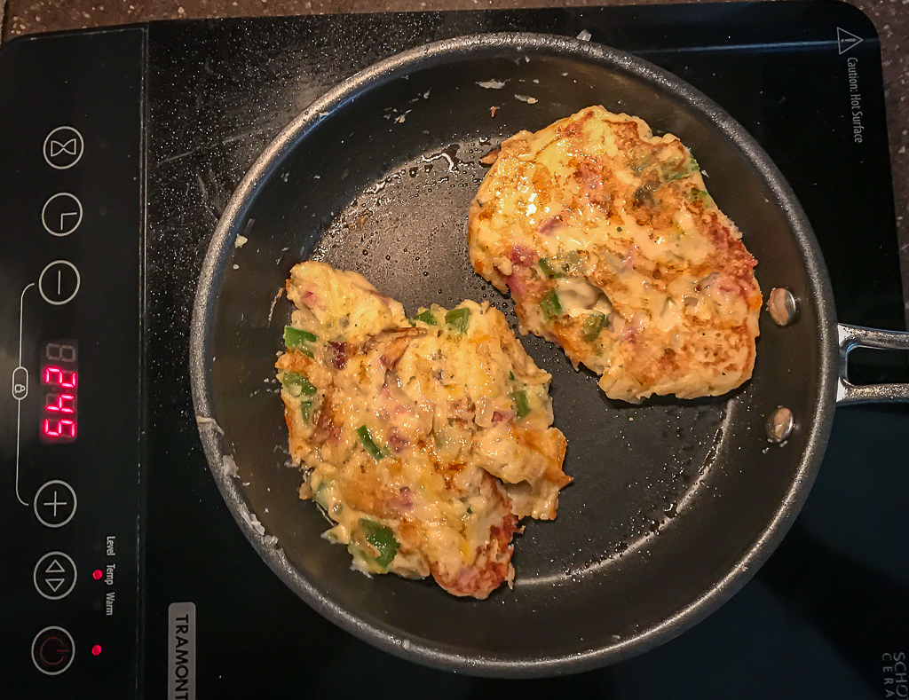 Pancake Hashbrowns—Potato pancakes with ham, onion, green pepper, and cheddar cheese