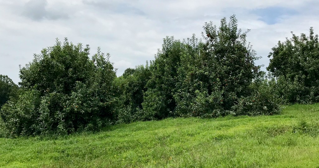 The older and “more retired” I get, the longer it takes to get started, particularly when I forget little tasks I plan to do! Consequently, it was just before lunch when we began driving towards Chimney Rock State Park, south and east of Asheville, NC. Our first stop was Camping World—it was the cleanest and most fully stocked Camping World we’ve seen. After purchasing an aluminum step and awning tie downs, we continued towards the state park. Regrettably to add to our delays, the Garmin GPS routed us to a dead end. The silver lining in this dark cloud was the numerous apple orchards along the hilly and curvy rural roads.