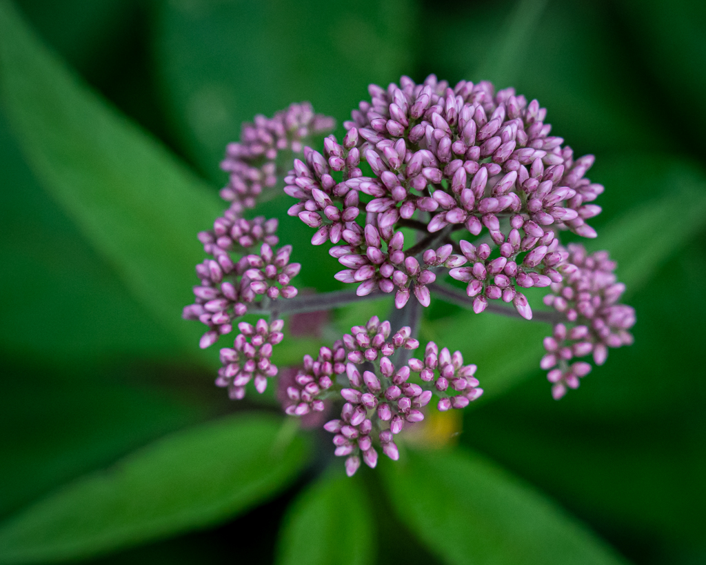 Rhododendrons lined the carriage road, and covered the forest floor—one can only imagine what it would look like in mid-June when the Rhododendrons are in full bloom. Scattered along the roadside among the Rhododendrons were beautiful wildflowers; Master Gardeners Nan and George identified them and provided some information about each species. It was like a guided tour! Even a few butterflies were observed nectaring on the blooms. Light rain accompanied us on the ascending half of the loop trail.