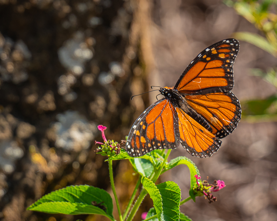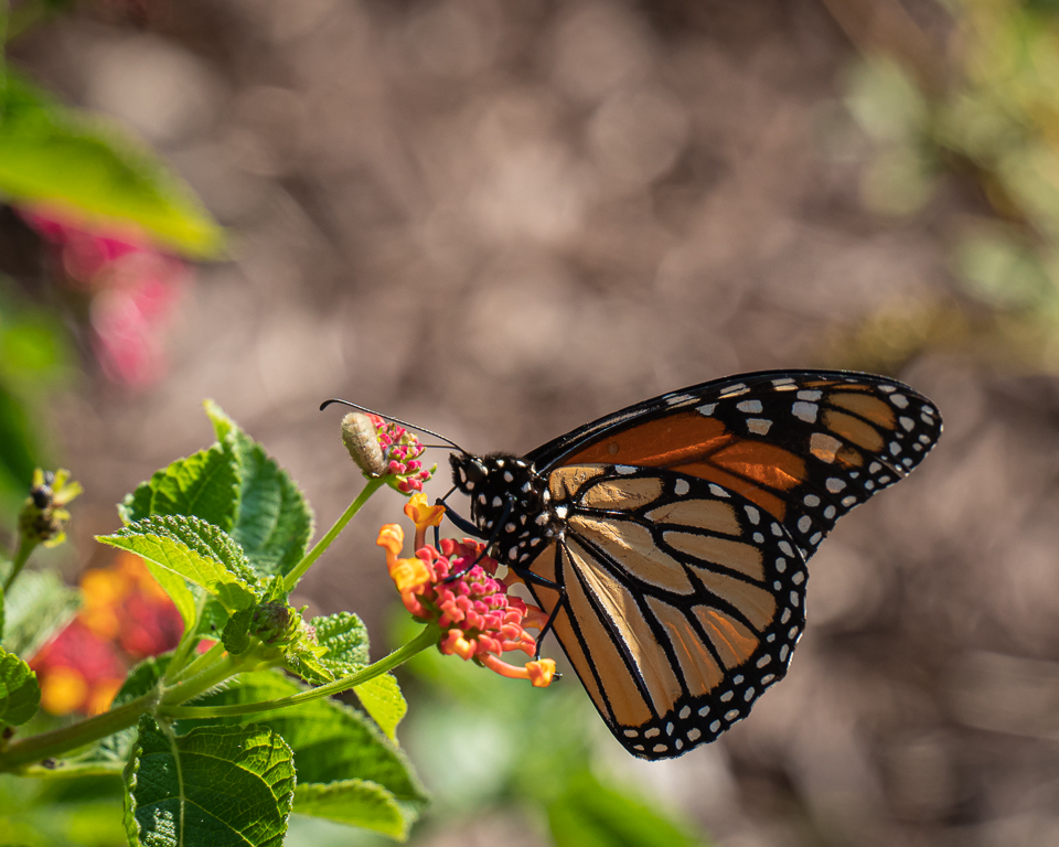 Meanwhile a beautiful Monarch was nectaring on a Lantana bloom. The Monarch was very skittish, and only allowed itself to be photographed from a distance.