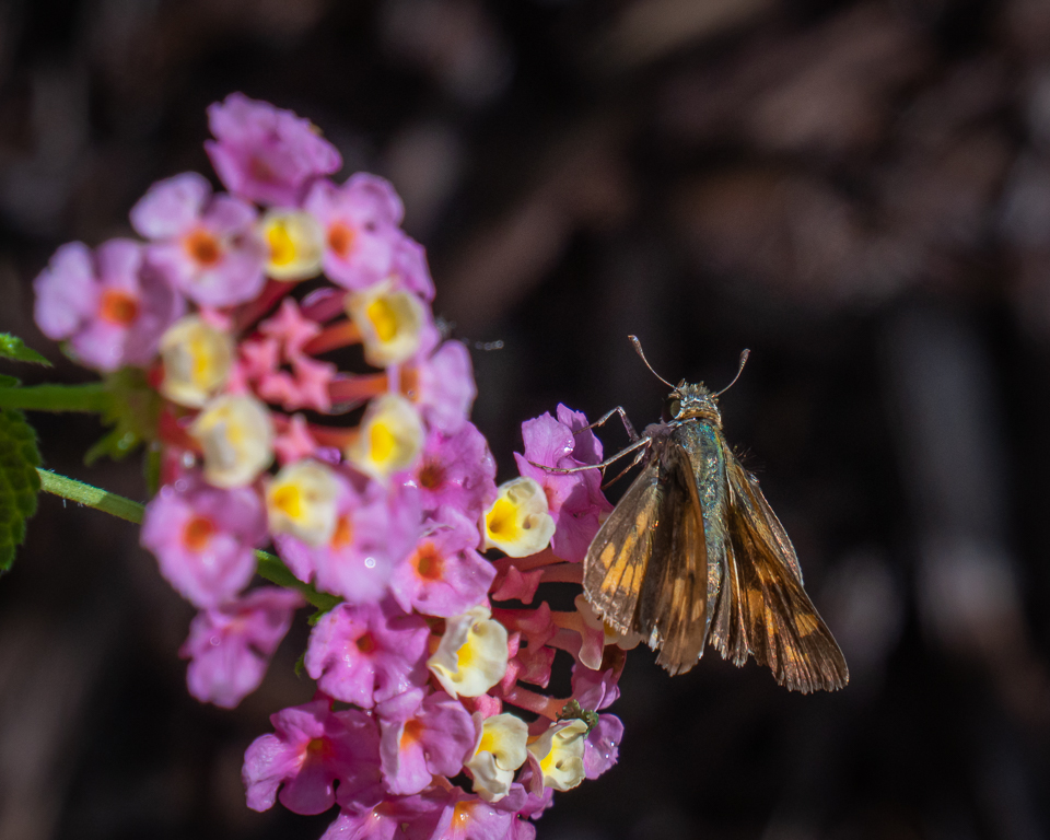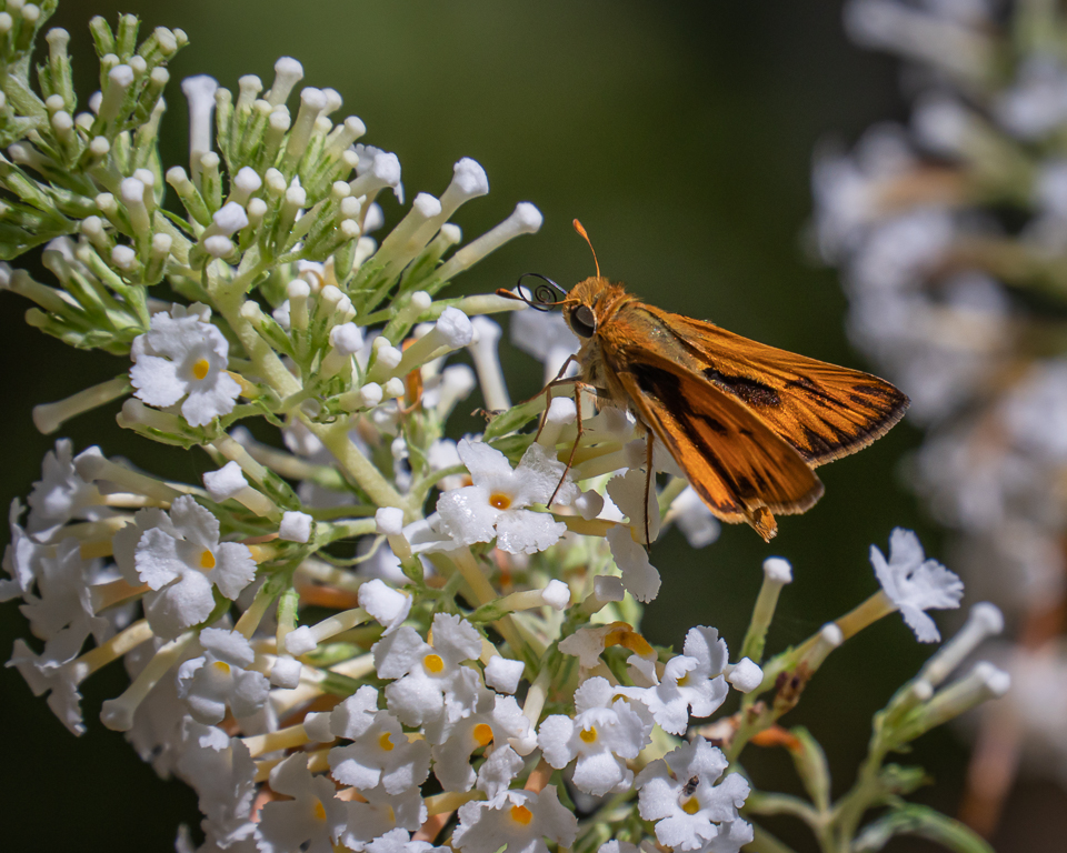 Tropical Storm Laura passed through quickly, followed by sunshine and high humidity today. After several inches of rain yesterday, none of the potted plants needed watering, but nevertheless, a walk around the yard to check on butterflies was a good way to begin the day.