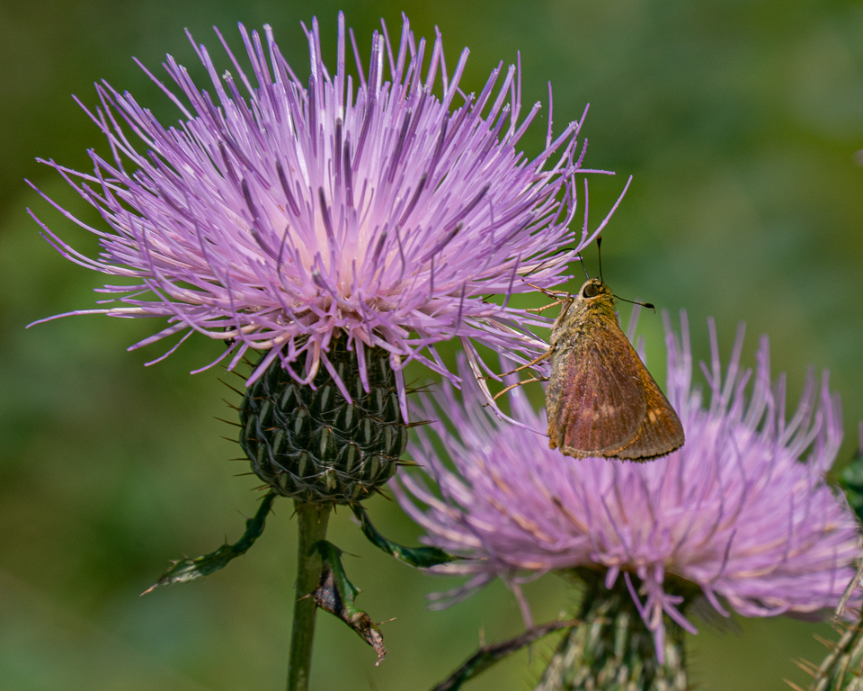 From Middle Fork Barrens Natural Area, Dan drove abound places where we had observed blooms and butterflies this time last year. The thistle was a few days from reaching peak bloom, thus the absence of nectaring butterflies. As a final stop, we walked the fence line at McClellan Beaver Dam Trail in Hot Springs Village. There we saw wildflowers, dragonflies, and butterflies, including the rare to us, Zabulon Skipper. (L to R: Guara, Horace’s Duskywing, Southern Brokenn-dash, Guara, Southern Broken-dash and Thistle, Guara, Common Whitetail Dragonfly, Dainty Sulphur, Red-banded Hairstreak, Southern Broken-dash, Zabulon Skipper, Zabulon Skipper and Southern Broken-dash on Thistle.