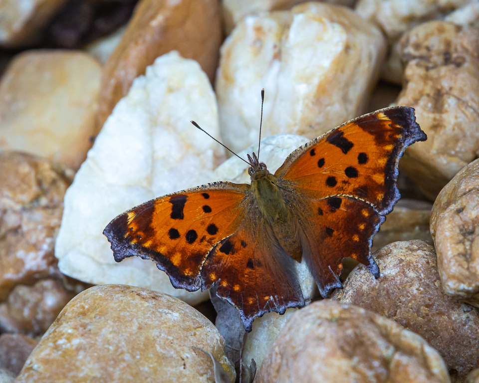 A stroll in the backyard Friday morning resulted in only 3 butterflies observed: a Hackberry Emperor (which would not pose), a Southern Broken-dash, and an Eastern Comma—a very slow day in the neighborhood. I’m guessing all the rain the last few days has put them down, and it will take a day or two for them to begin nectaring again.