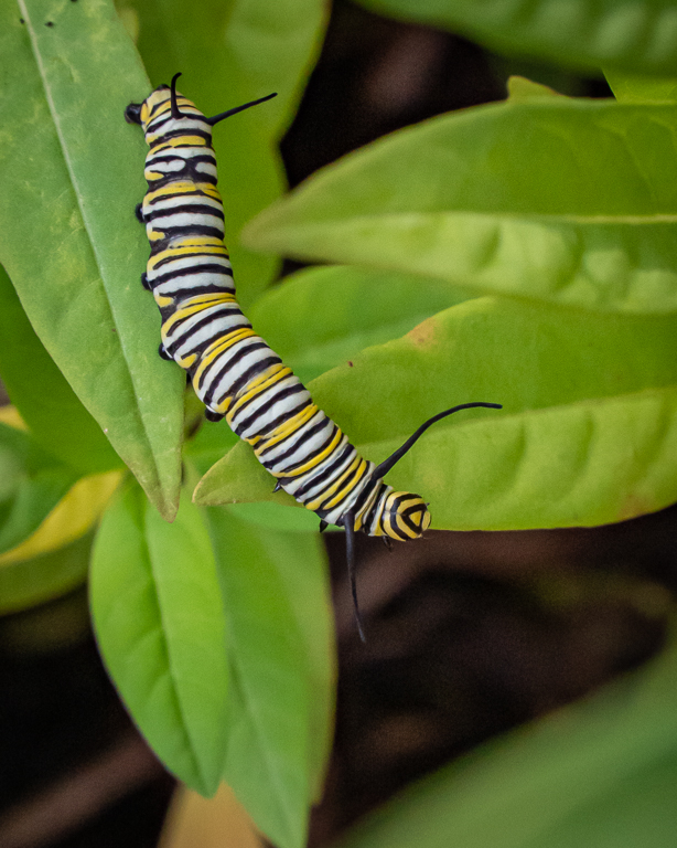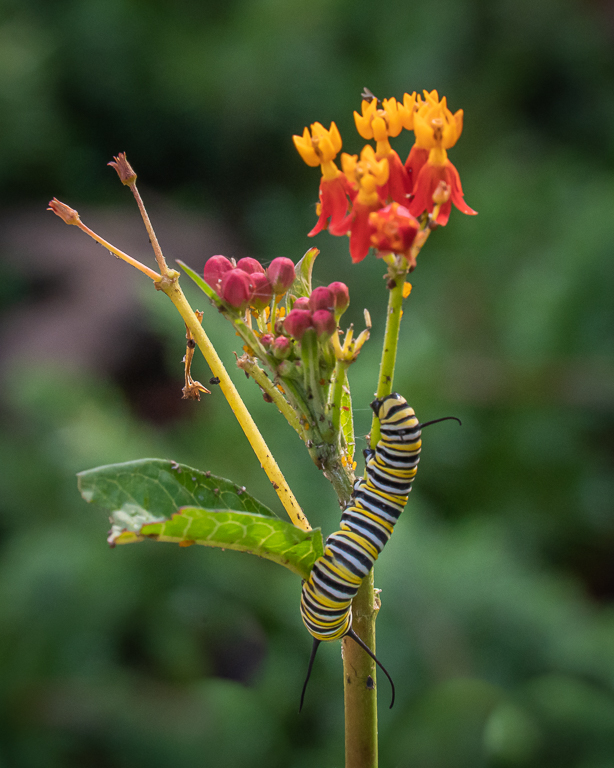 A quick look at the Butterfly Weeds revealed Monarch catepillars munching away on the leaves. We counted 6, total. These are firsts for us in Hot Springs Village, though we had a lot of catepillars one year in Norfork, AR. We have been planting pollinating plants for 5 years now in hopes of attracting butterflies and hummingbirds, and maybe it’s finally paying dividends.