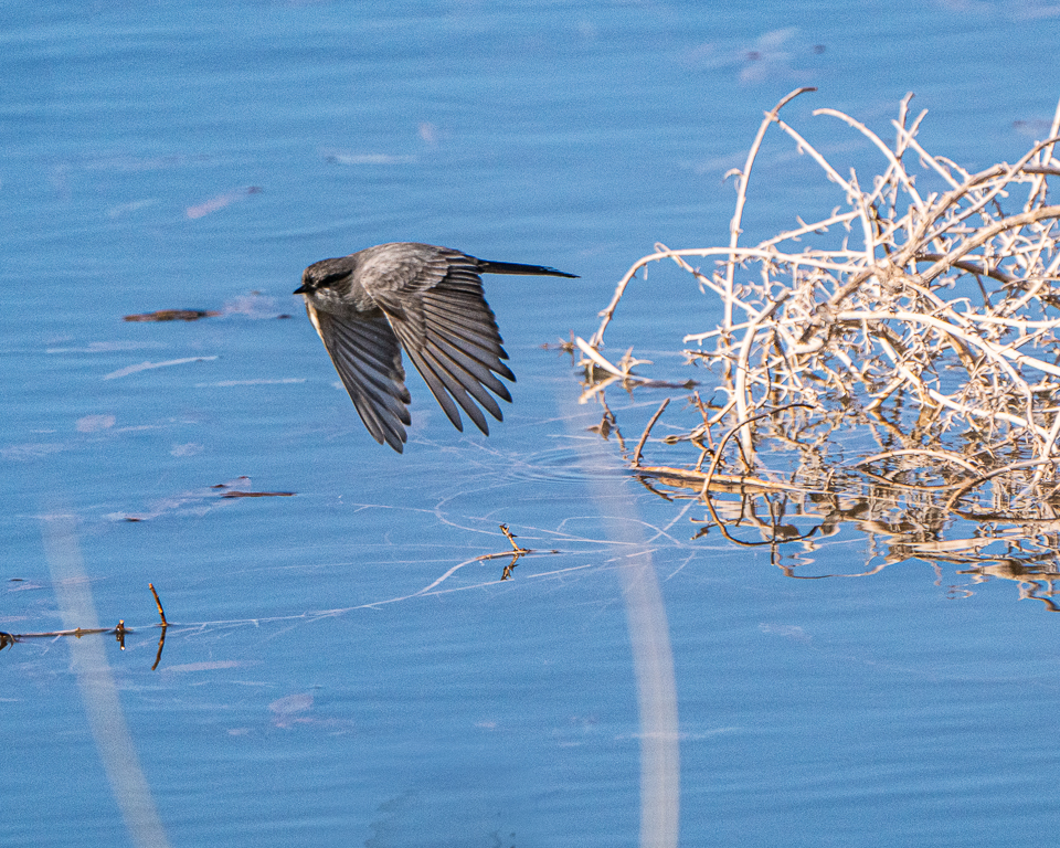 Today, the plan was to complete the loop of Paradise Road, Turkey Creek Road, and Mountain Road, stopping at the George Walker House, and then hike the South Fork Trail. Again, it was cold and breezy, though not as windy as yesterday. After studying the birding map, a deviation to Willow Tank was made. I attempted several birds-in-flight photos of Flycatchers feeding.
