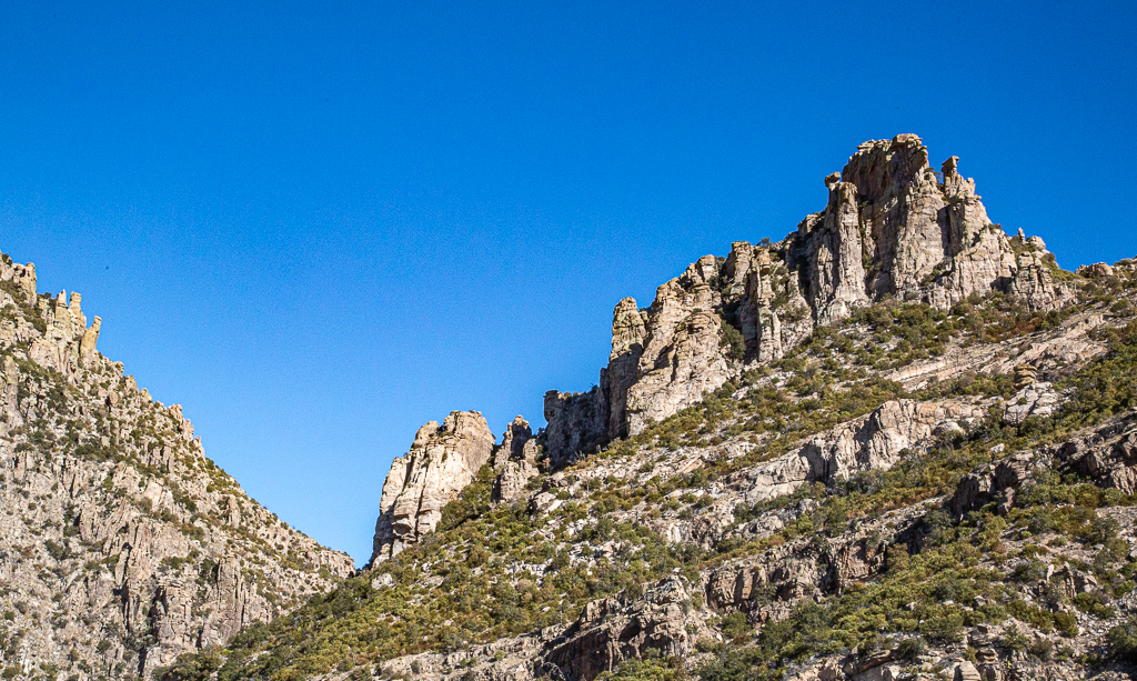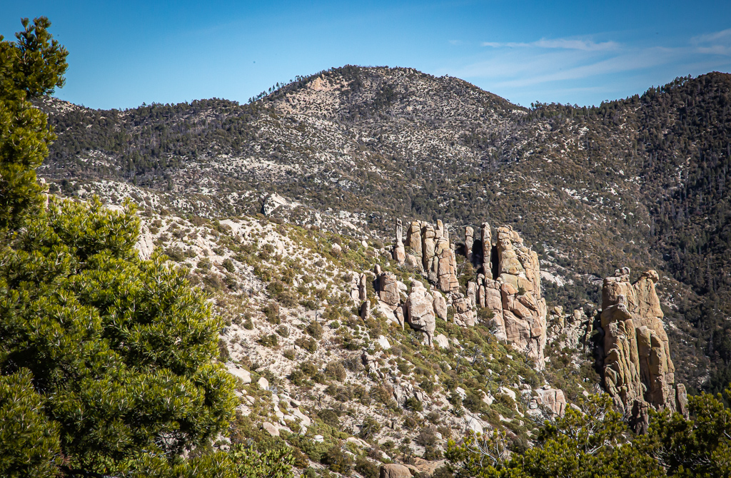 Beginning in the high desert filled with various species of cacti at about 2,500 feet in elevation, the Catalina Highway, also called the Mount Lemmon Highway, as well as the Hitchcock Highway runs up the Santa Catalina Mountains from the east side of Tucson up to Summerhaven, at the top of Mt. Lemmon, in an alpine, evergreen filled forest. The beautiful, curving road is a favorite drive for tourists, for locals escaping summer’s heat and especially for cyclists who make the long, difficult ascent jut to ride down at unthinkable speeds. We saw hundreds of cyclists making this grueling ascent.