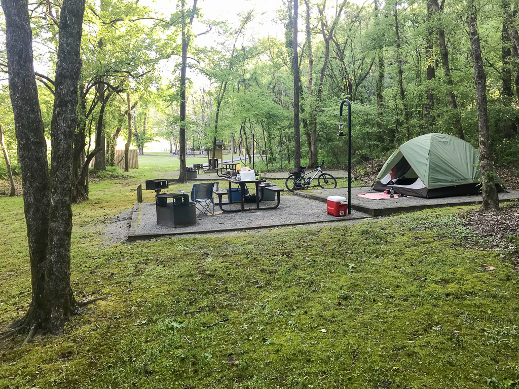 With a full belly, I began the long ride back to camp. The prevailing winds had increased in velocity to about 15 mph, and were directly in my face. And, much of this part of the trail is void of any trailside vegetation to serve as a windbreak; and with cleared agricultural land as far as one could see giving the wind an unobstructed path, it made for very difficult paddling—my average speed dropped about 35 percent. Finally, back at the Lake View trailhead, some tree canopy served to diffuse the wind to make pedaling a bit easier. And yes, the dogs again took chase again at Mile 8.0. After arriving back in camp, I was too tired to do much of anything. A pot of hot tea and a camp chair served as a resting place until bedtime.