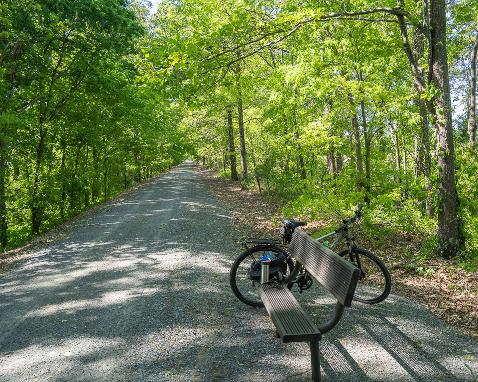 The tree canopy enclosing parts of the trail added to the already great aesthetics, and provided for a tranquil ride though two dogs gave chase at Mile 8.0 (6.0 miles into the ride).