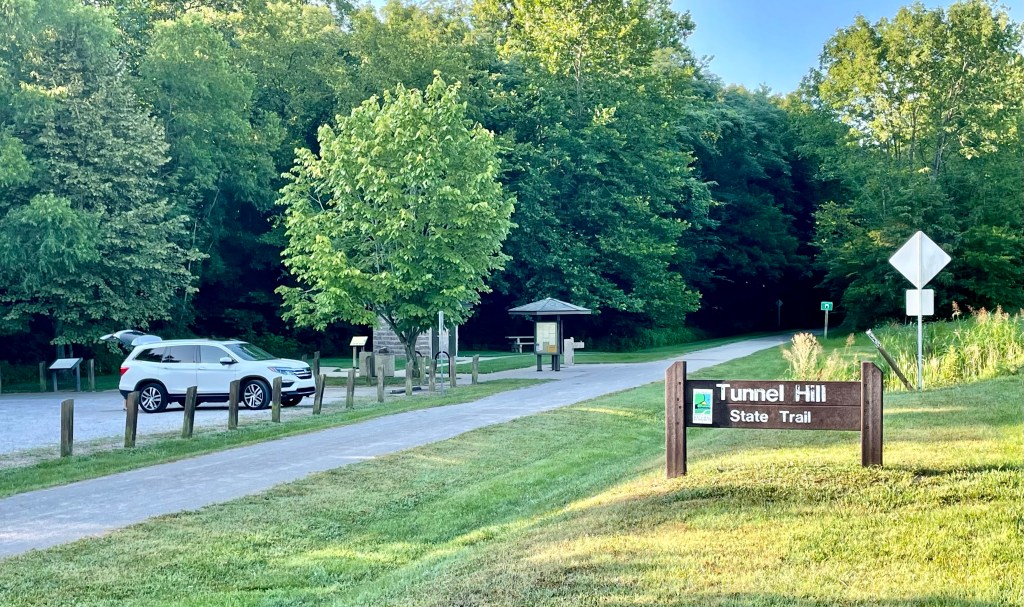 After grabbing some coffee and pastry from the hotel’s “breakfast” bar, we filled up with pricey gasoline and drove to the Tunnel Hill, Indiana, trailhead, about 30 minutes away.