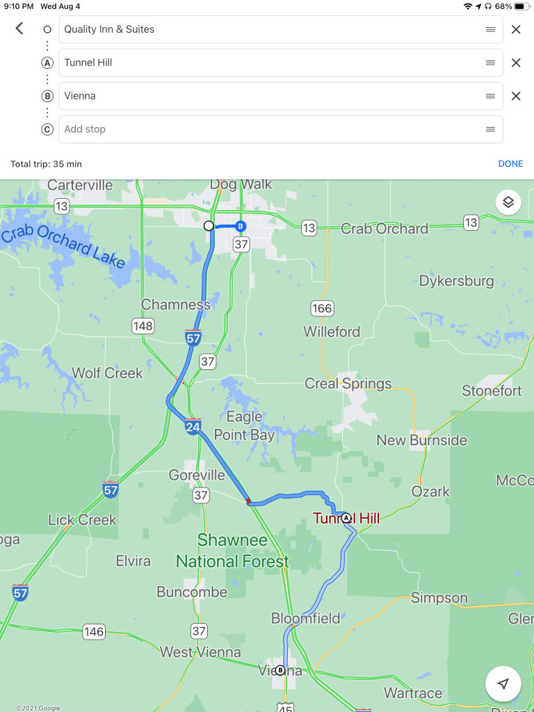Marion, IL, to Tunnel Hill to Vienna