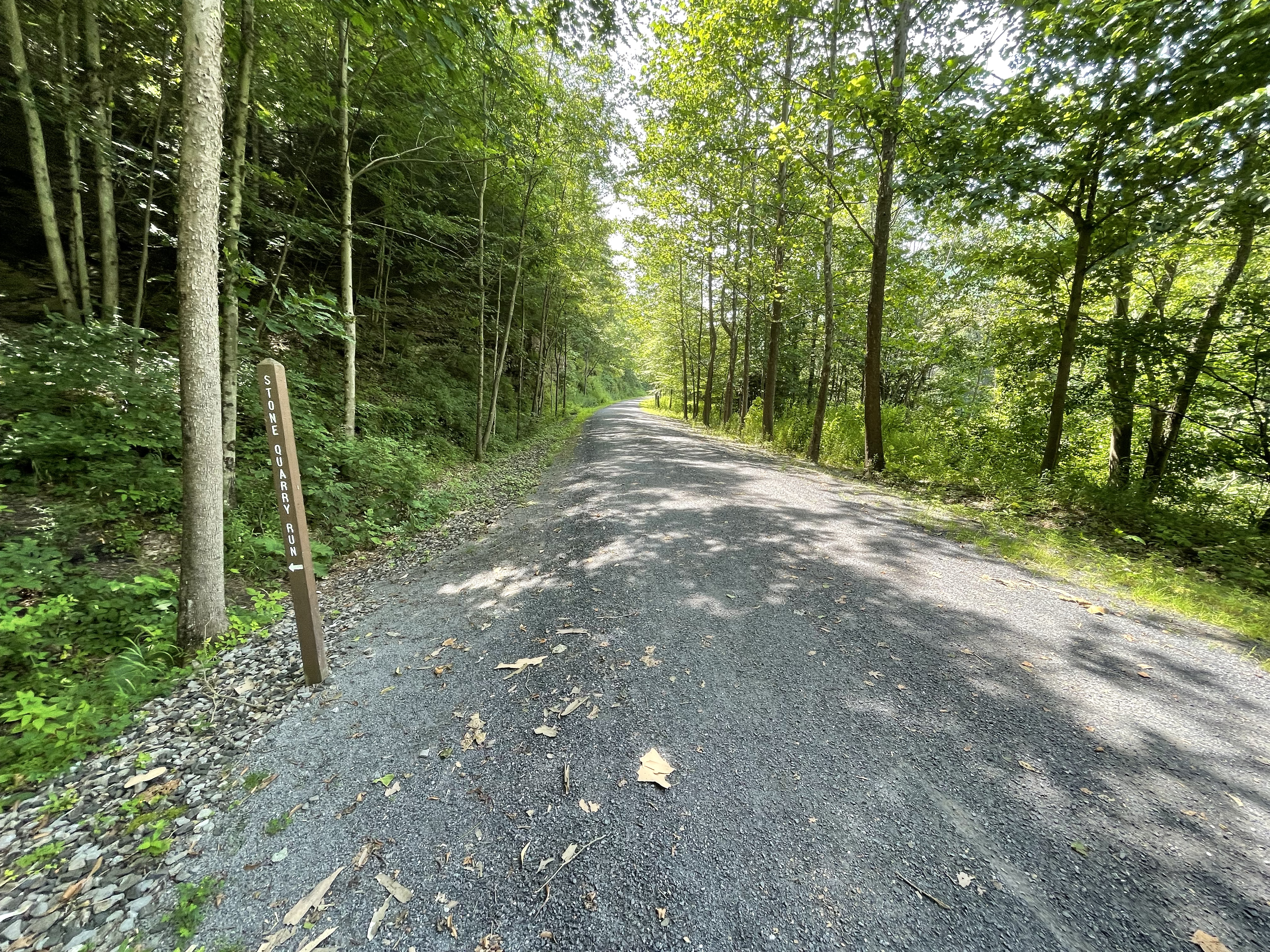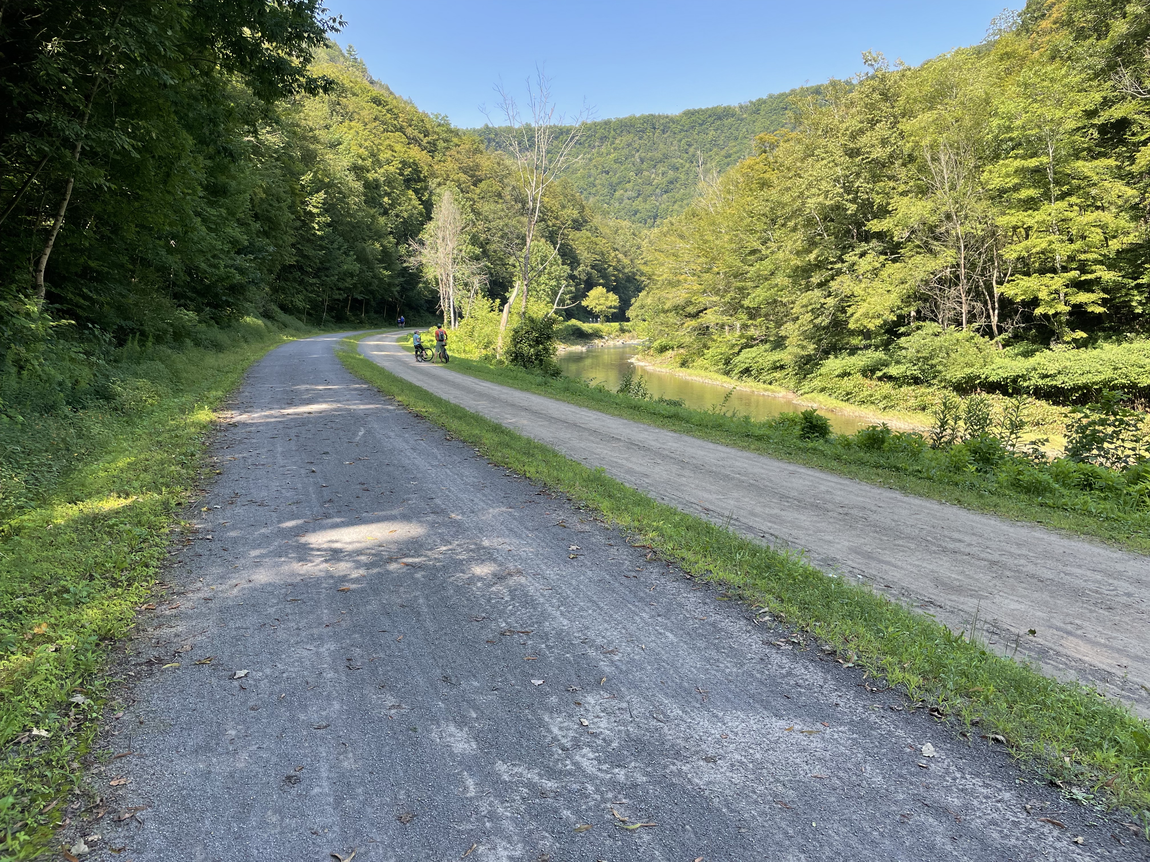 State forests lined much of the trail, with steep slopes on the left and Pine Creek on the right (cycling downstream).