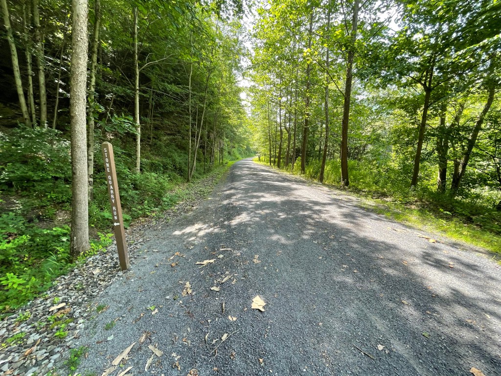 After a lazy early Friday morning catching up on news, etc., we drove to Darling Run access for the Pine Creek Rail Trail near Antonia, Pennsylvania. This is also the official start of Pine Creek Gorge, known locally as Pennsylvania’s Grand Canyon. Pine Creek Gorge is a 47-mile gorge carved into the Allegheny Plateau by Pine Creek in north-central Pennsylvania. It sits in about 160,000 acres of the Tioga State Forest. The canyon begins south of Ansonia, near Wellsboro, along U.S. Route 6 and continues south. Its deepest point is 1,450 feet at Waterville, near the southern end, and the distance rim-to-rim is about 4,000 feet.