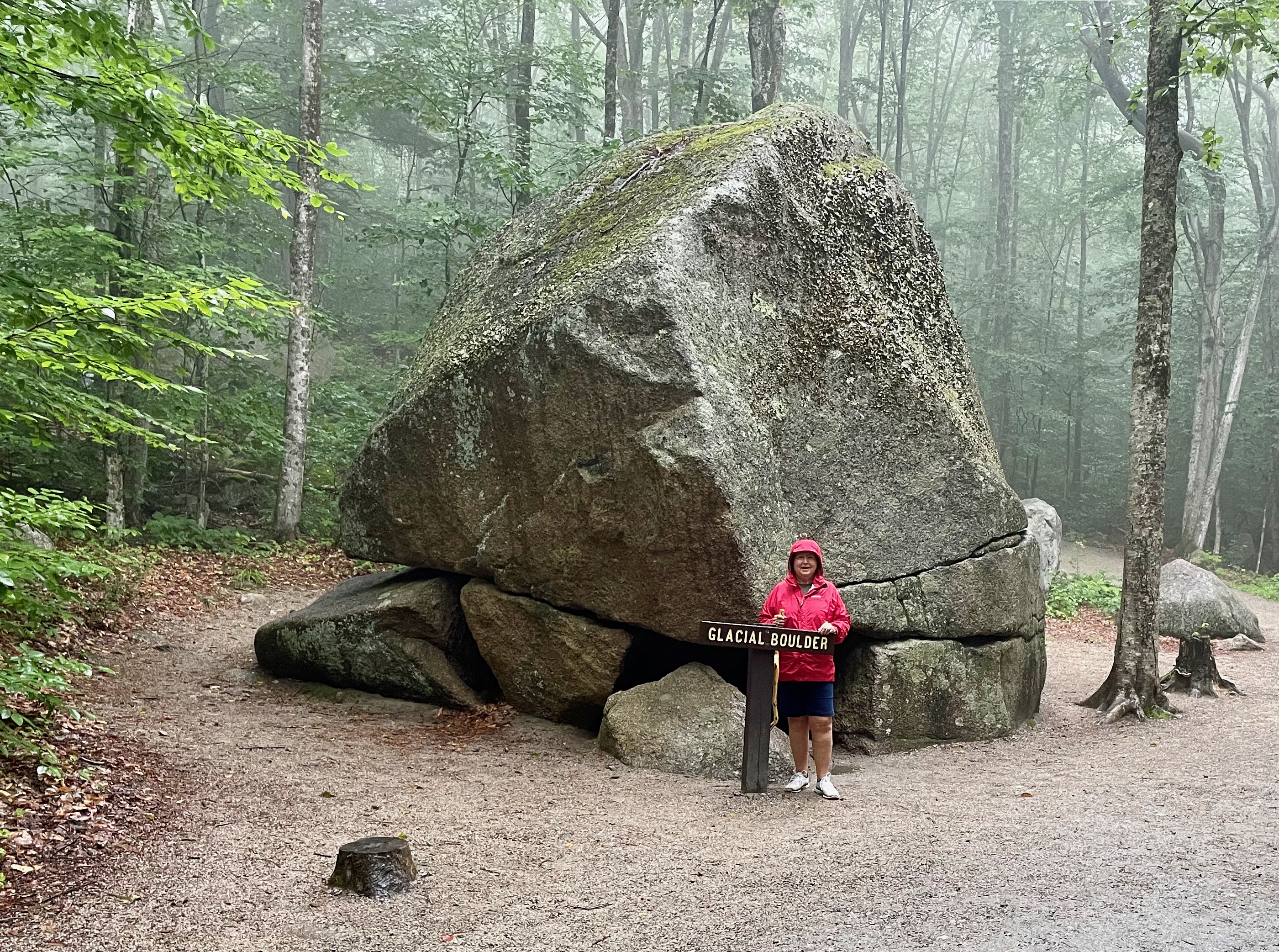 Following the Flume Gorge hike, we drove to a nearby trailhead and hiked a short trail to view Profile Lake and Old Man Historic Site. The Old Man of the Mountain, also called the Great Stone Face and the Profile, was a series of five granite cliff ledges on Canon Mountain in the White Mountains of New Hampshire, that appeared to be the jagged profile of a human face when viewed from the north. The rock formation is 1,200 feet above Profile Lake, was 40 feet tall and 25 feet wide. The first recorded mention of the Old Man was in 1805. It collapsed on May 3, 2003