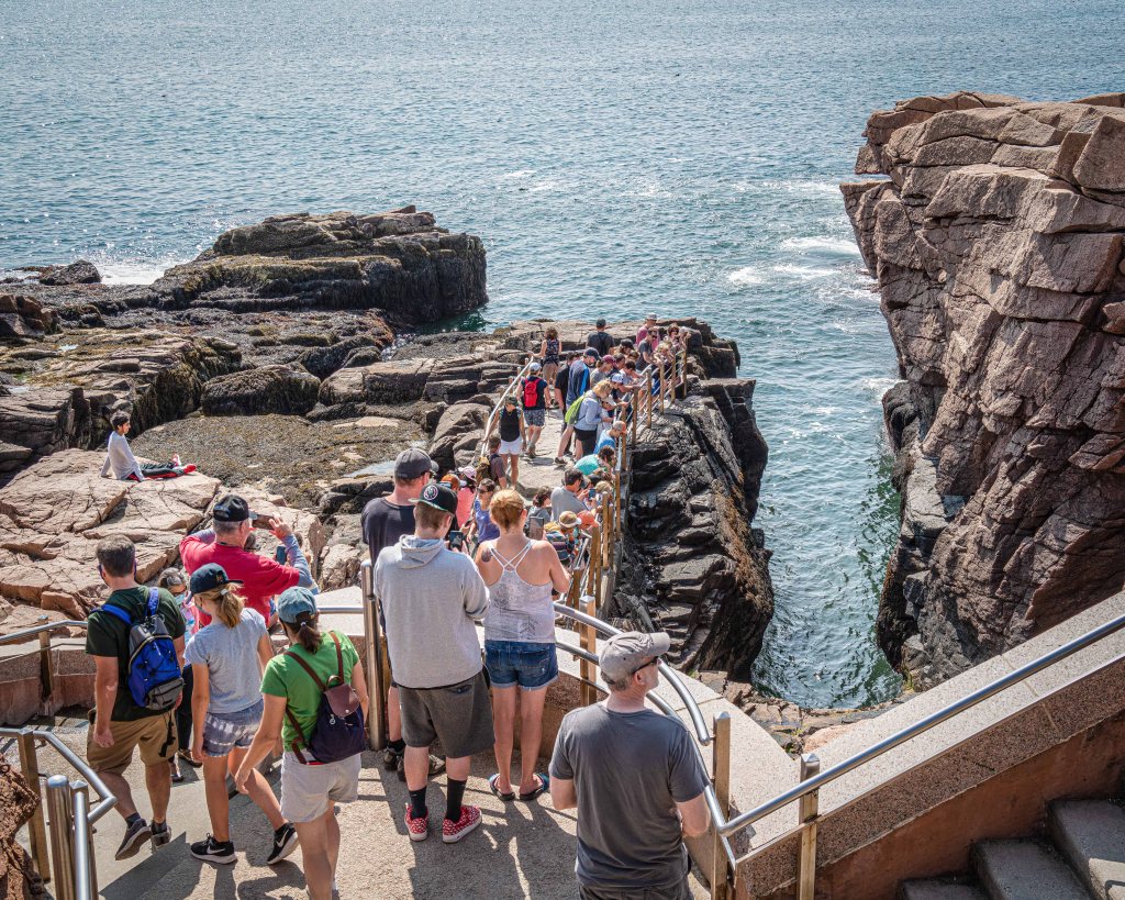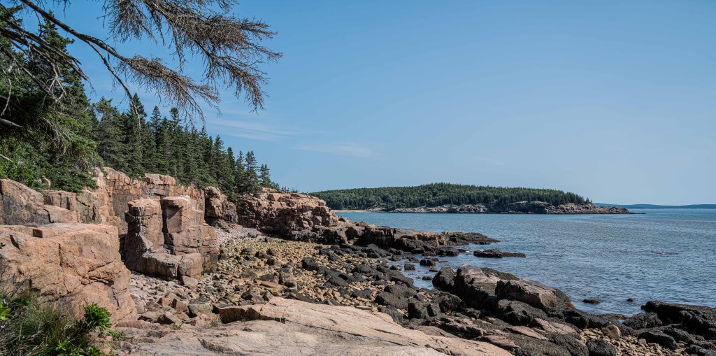 After a somewhat restful night, we munched on leftover breakfast food before driving to Acadia National Park, our target destination for this whole trip. Acadia National Park is the only national park in the northeast, and is the eighth most visited national park in the US. Suffice to say, it was crowded, in fact, very crowded! Our plan was to catch one of the park’s shuttles, ride the Park Loop Road, and get on/off at significant points of interest. The 27-mile road is the go-to scenic drive around the east side of Mount Desert Island, connecting Acadia’s lakes, mountains, and shoreline. It provides access to popular areas such as Sand Beach, Thunder Hole, Otter Point, Jordan Pond, and Cadillac Mountain.