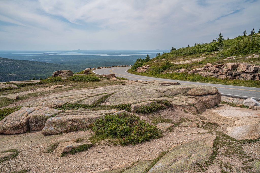 Our final goal touring Acadia NP was driving to the top of Cadillac Mountain. Cadillac Mountain is the major destination for visitors to Acadia National Park. It is Accessible by car, and is the highest point on the east coast of the U.S. it offers magnificent views of a glaciated coastal and island landscape. With intense visitation through the summer months for the past eighty years, the summit area has sustained substantial loss of soil and vegetation. Several rare plants that inhabit the mountaintop may be threatened as a result, and they are now roped off.