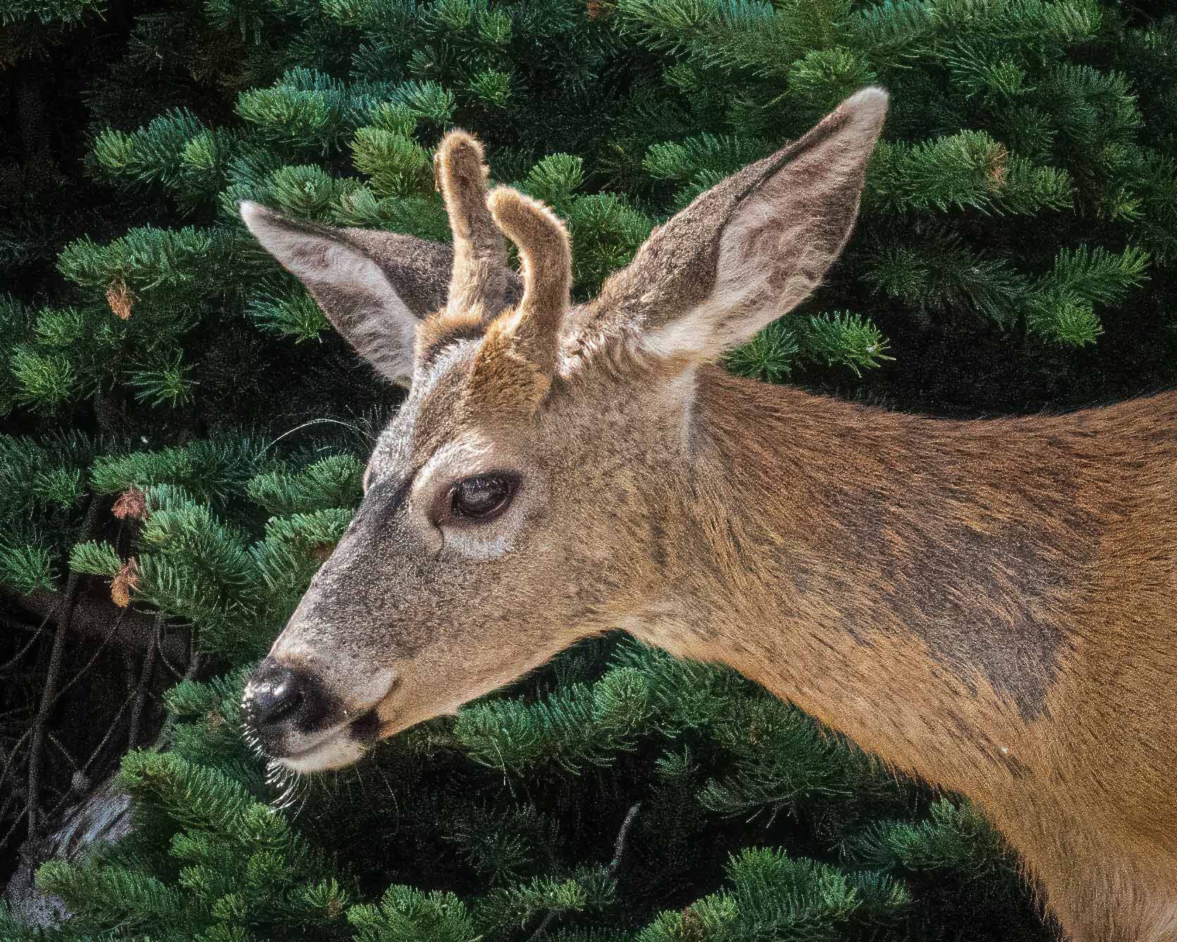 Further along the trail, a number of deer were casually browsing as the walked along the trail, too friendly for their own good.