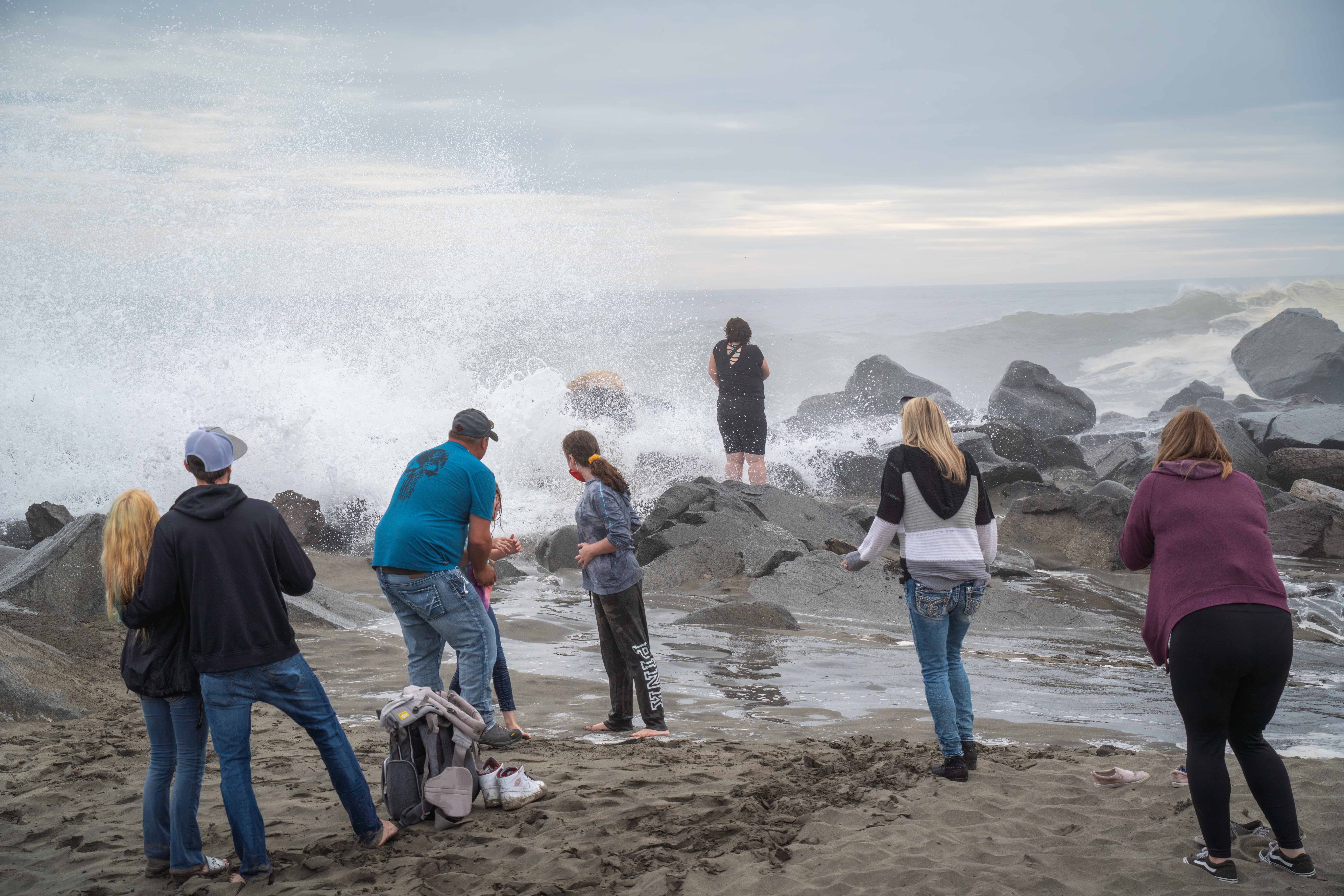 From Leadbetter Point, Ralph drove us to Ocean Shores, Washington, where we we were mesmerized by the large waves rolling in, unimpeded, from the Pacific Ocean. As the waves crashed into the big rocks comprising the jetty, spraying water flew high into the air. It was like watching a line of erupting geysers.