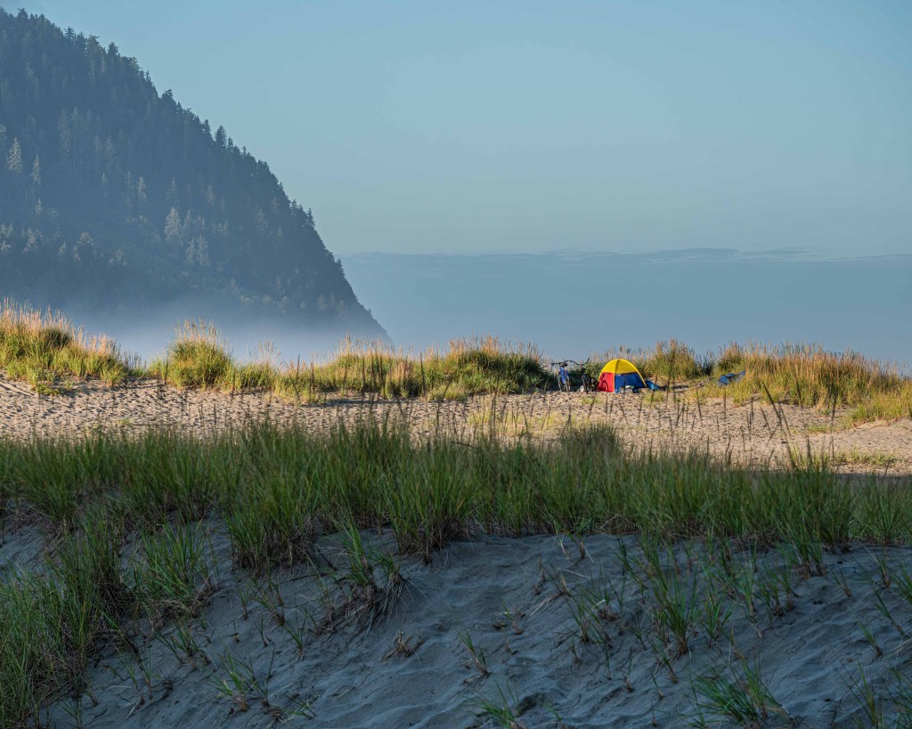 A long-awaited view of the near vertical shoreline with sea stacks greeted us on our stop at Ecola State Park. Sea stacks are huge rock monoliths jutting from the ocean, A short walk to one of two observation points offered cliff side viewpoints of secluded coves, forested promontories, and even a long abandoned lighthouse. Continuing the loop brought us to an almost breathtaking view of Haystack Rock. The low morning sun glowing off the Pacific Ocean cast a hazy glow on the shoreline, resulting in a subtle, but eerie feeling of tranquility. It was a view that one could enjoy all day.