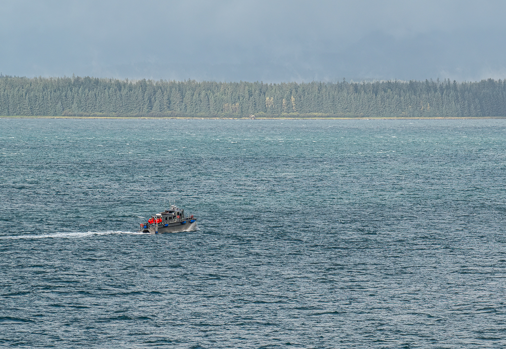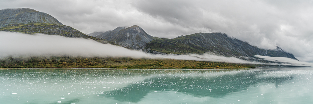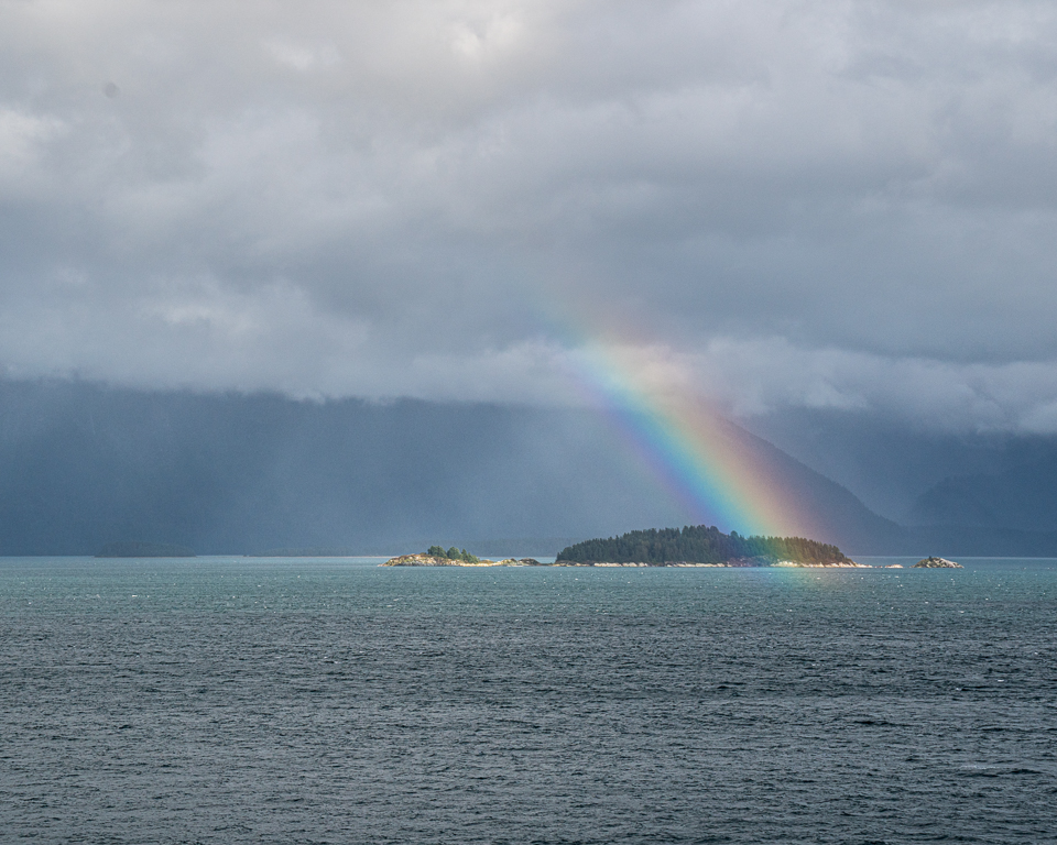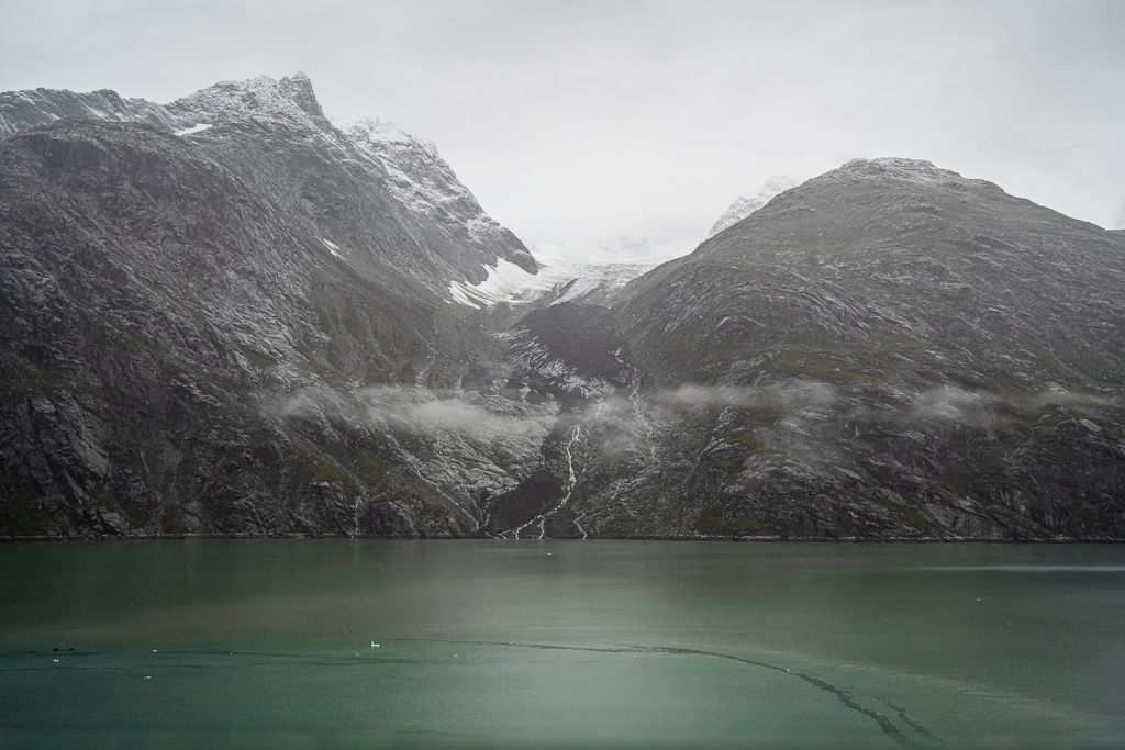 We spent the entire day cruising in Glacier Bay among icebergs and calving glaciers, though the ship did not dock anywhere in Glacier Bay National Park and Preserve. Though we constantly scanned the shorelines for wildlife, we only saw a few seals, a couple of whales, a couple rainbows, several glaciers, and lots of small icebergs. Obviously, the rain and heavy fog did not enhance our visit.