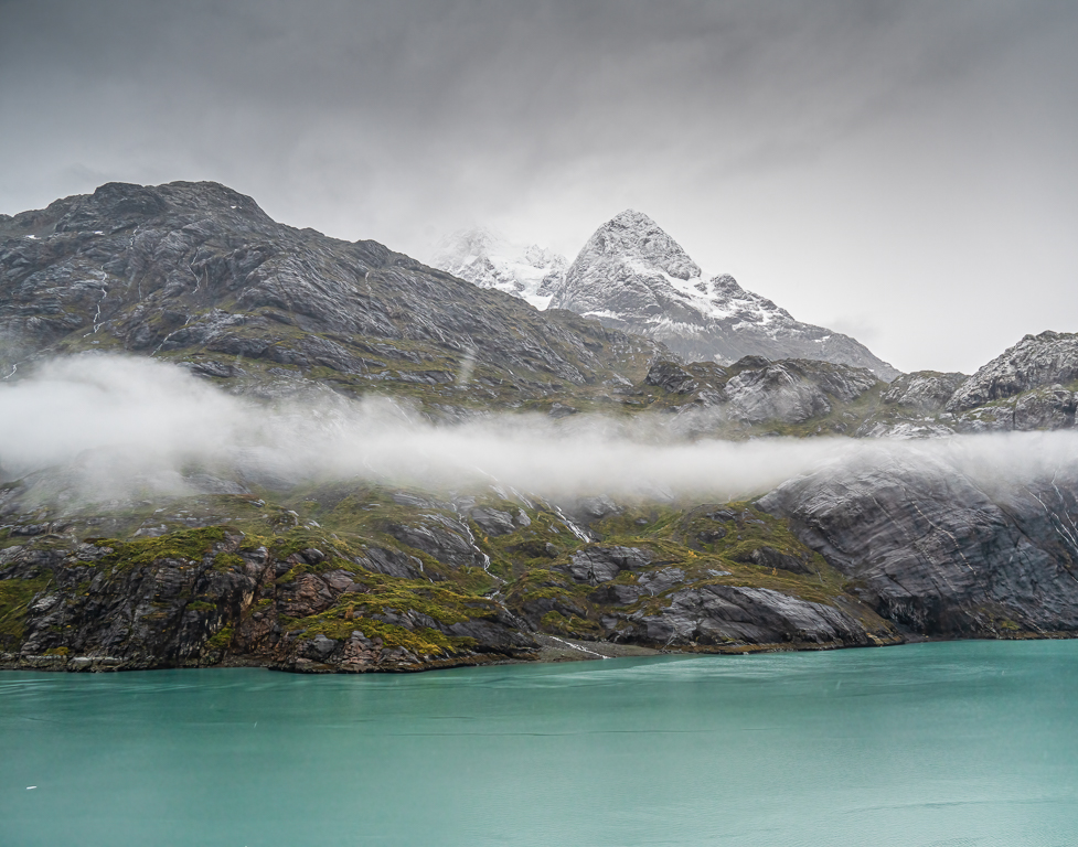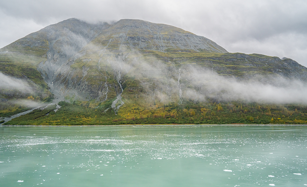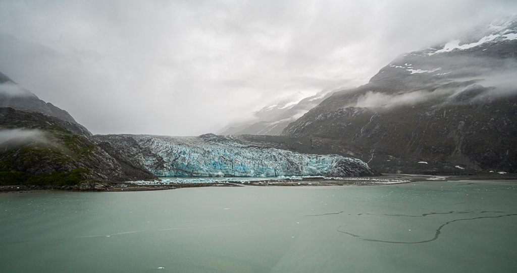 We spent the entire day cruising in Glacier Bay among icebergs and calving glaciers, though the ship did not dock anywhere in Glacier Bay National Park and Preserve. Though we constantly scanned the shorelines for wildlife, we only saw a few seals, a couple of whales, a couple rainbows, several glaciers, and lots of small icebergs. Obviously, the rain and heavy fog did not enhance our visit.