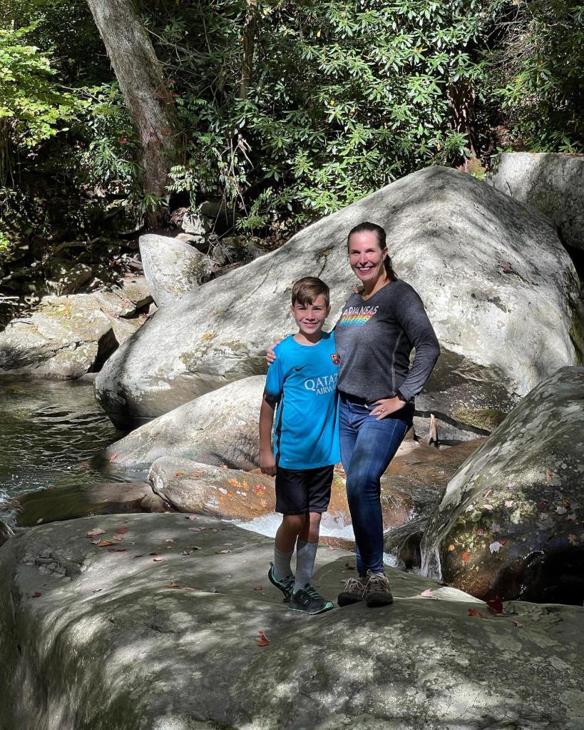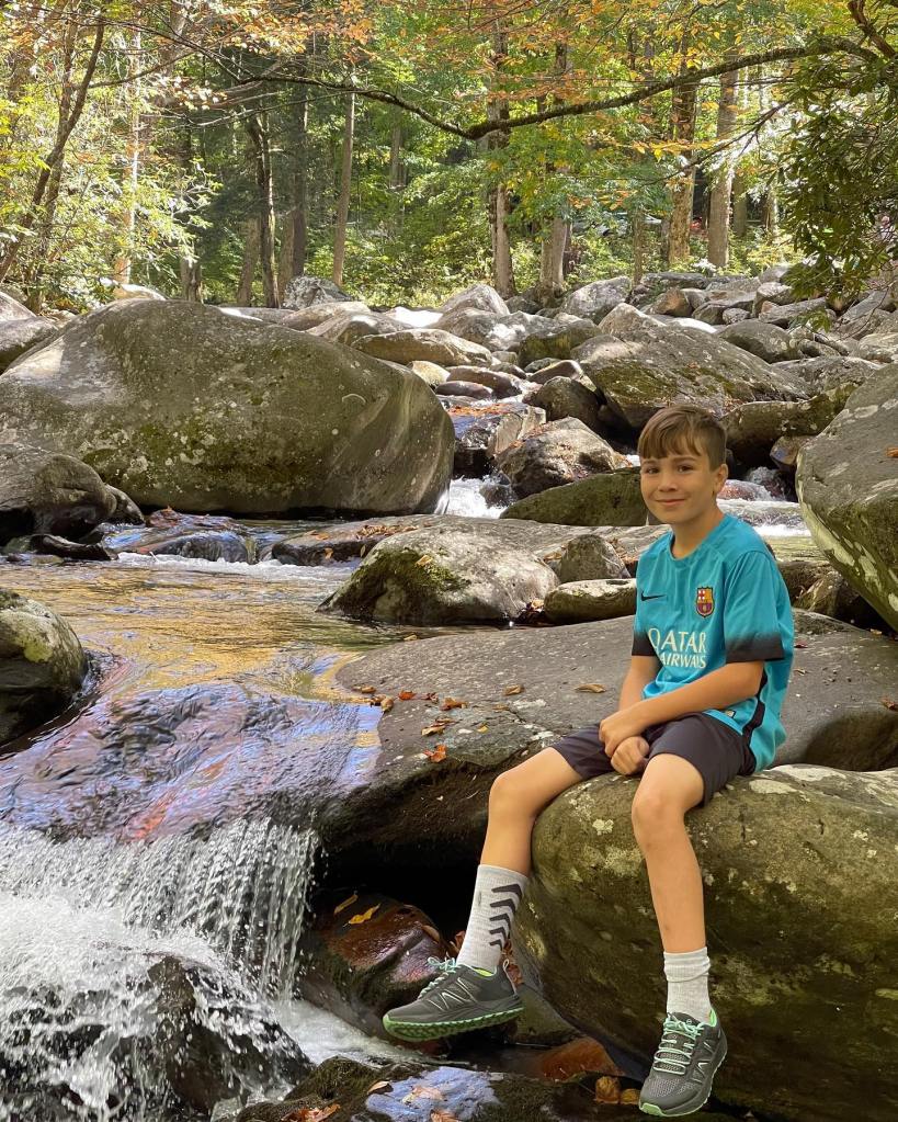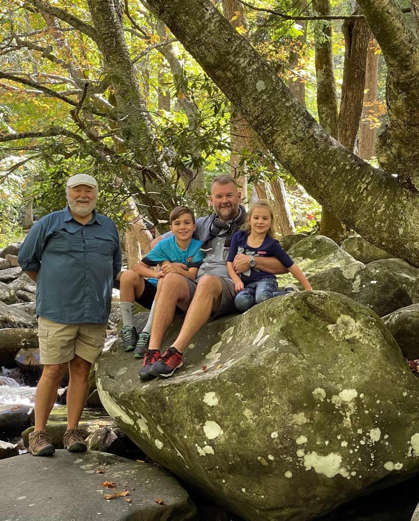 After the great hike among the towering trees, the kids (we’re all kids in heart if not in body) played among and on top of the huge, rounded car-sized boulders in the West Prong of the Little Pigeon River. True to its name the Chimneys Picnic Area was filled to capacity with picnickers, but we felt almost alone among the giant boulders and trees.