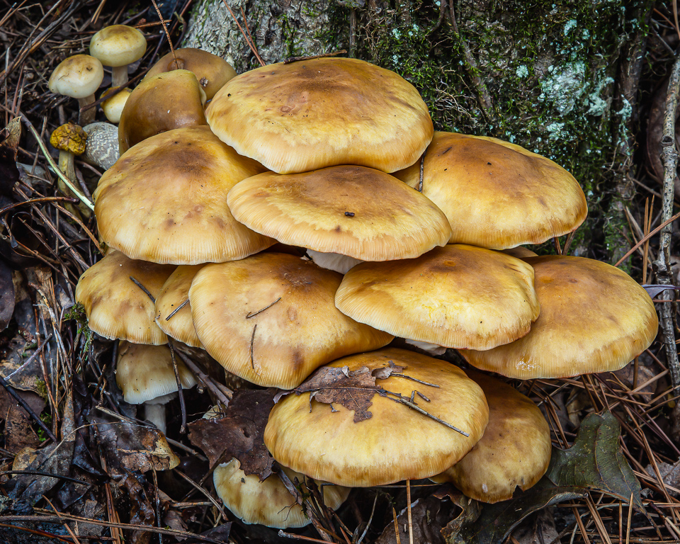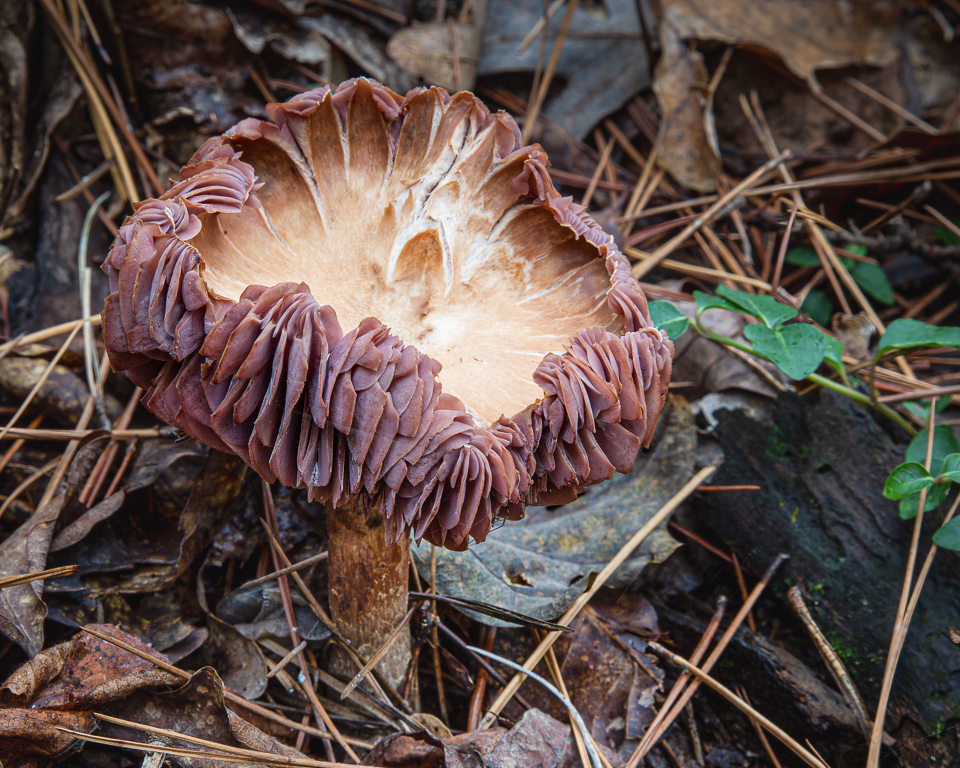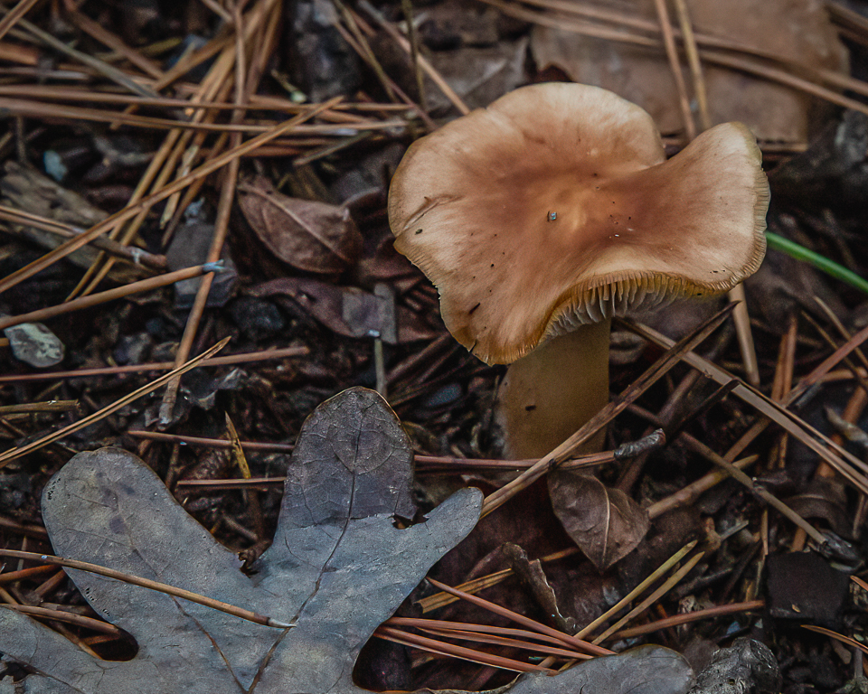 Having seen some of the iPhone photos of mushrooms taken on Sunday, Dan and I returned to the Ouachita Trail Tuesday afternoon with the big cameras, macro lenses, and tripods to capture the subtle colors and textures of the various species of mushroom. We were not disappointed.