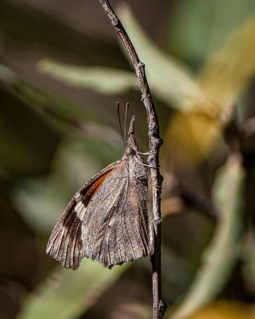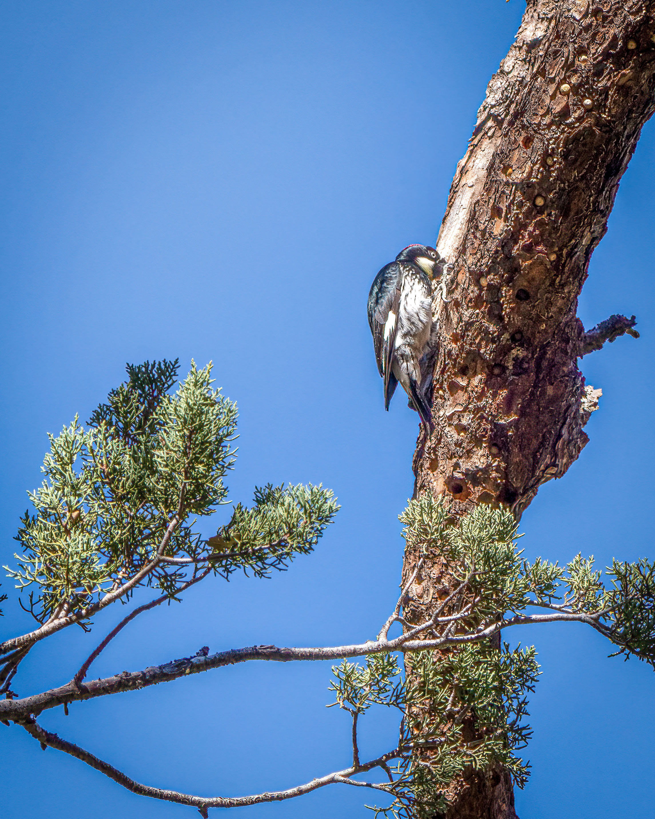 Our first stop was at the Rodriguez place, hoping to find birds galore to photograph. Mr. Rodriguez was at the feeding area when we arrived, and said that most of “his” birds left a couple of months ago. While we saw Gambel’s Quail, an occasional Mexican Jay, and a Pyrrhuloxia (aka Desert Cardinal), birds were scarce, no photos were made and processed. Next, Cave Creek Canyon beckoned, and the mountains, evergreens, and high desert proved once again that it was my “”happy place. Stops were made along the road where Dan had spotted birds on his previous trips. Birds were scarce; only an Acorn Woodpecker, American Snout butterfly, and Gould’s Turkey were photographed.