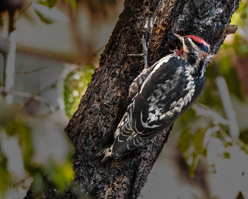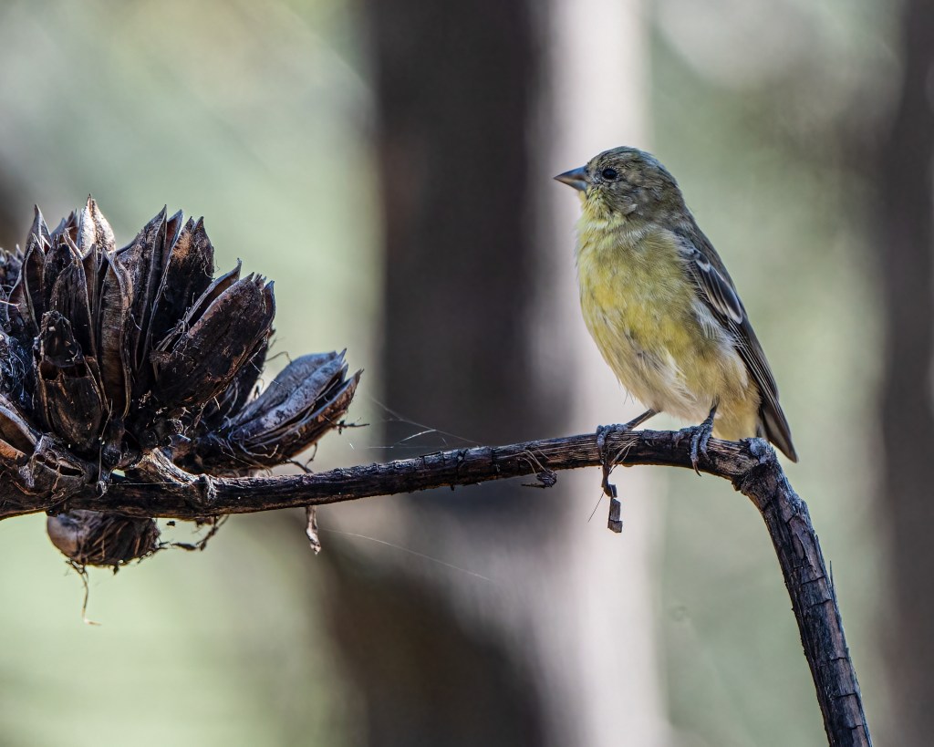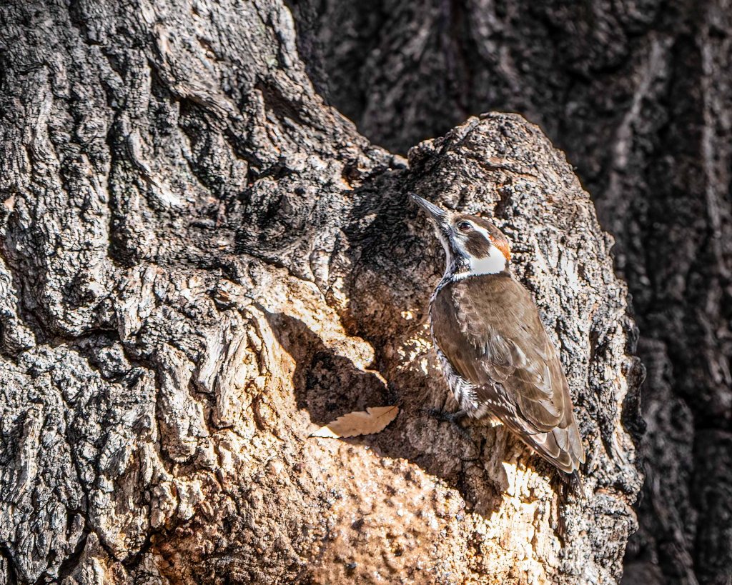 The road to Paradise zigzagged upward on the switchbacks through the high desert mountain roads. We reached the George Walker House at Paradise near noon, and began observing the Mexican Jays flying in and out of the feeding station area. House Finches and Lesser Goldfinches were gorging on the seeds that had fallen to the ground. A Spotted Towhee and Yellow-rumped Warbler were seen among the shadows near the watering area. And lastly, an Arizona Woodpecker arrived near the suet on the old tree standing guard near the house.