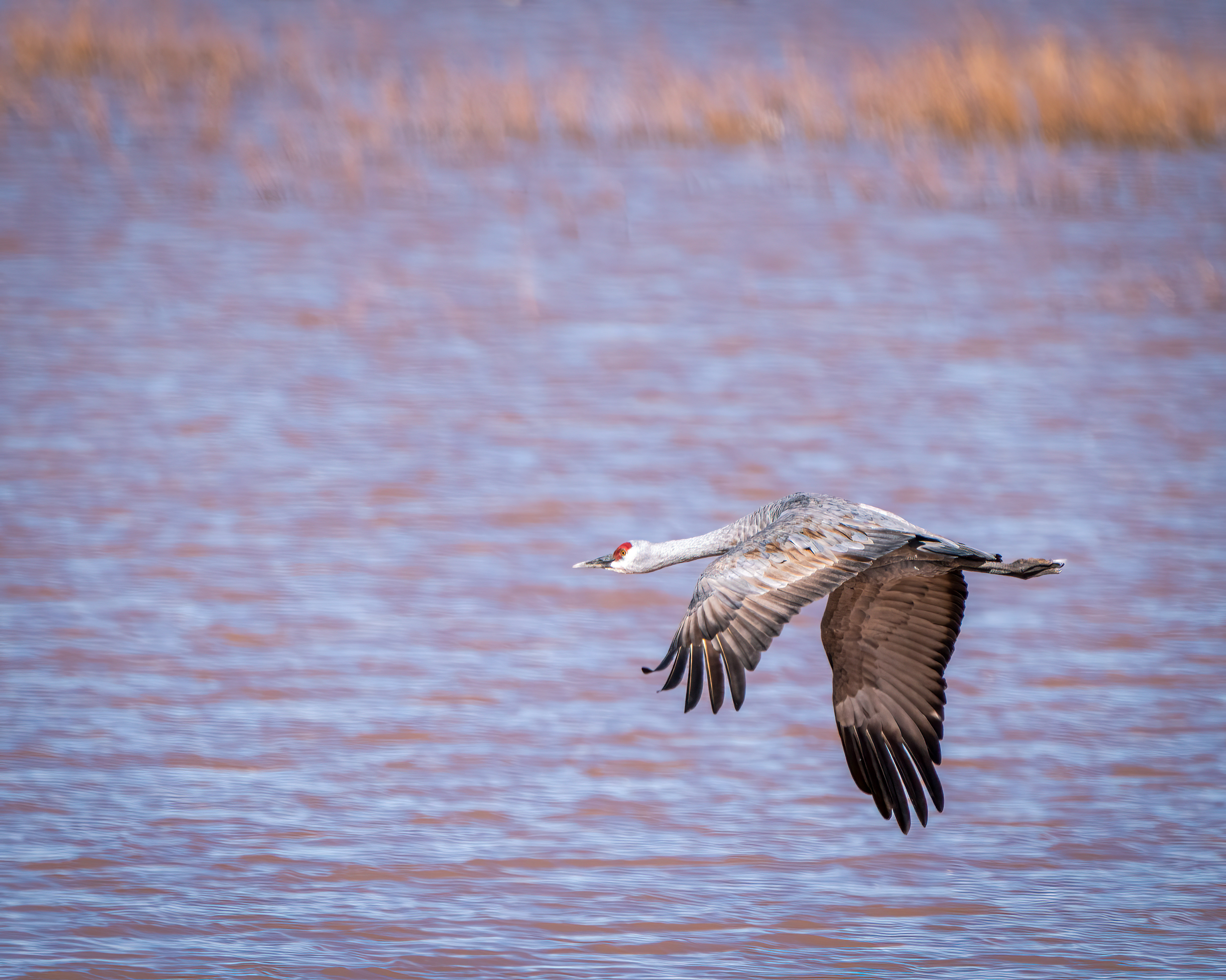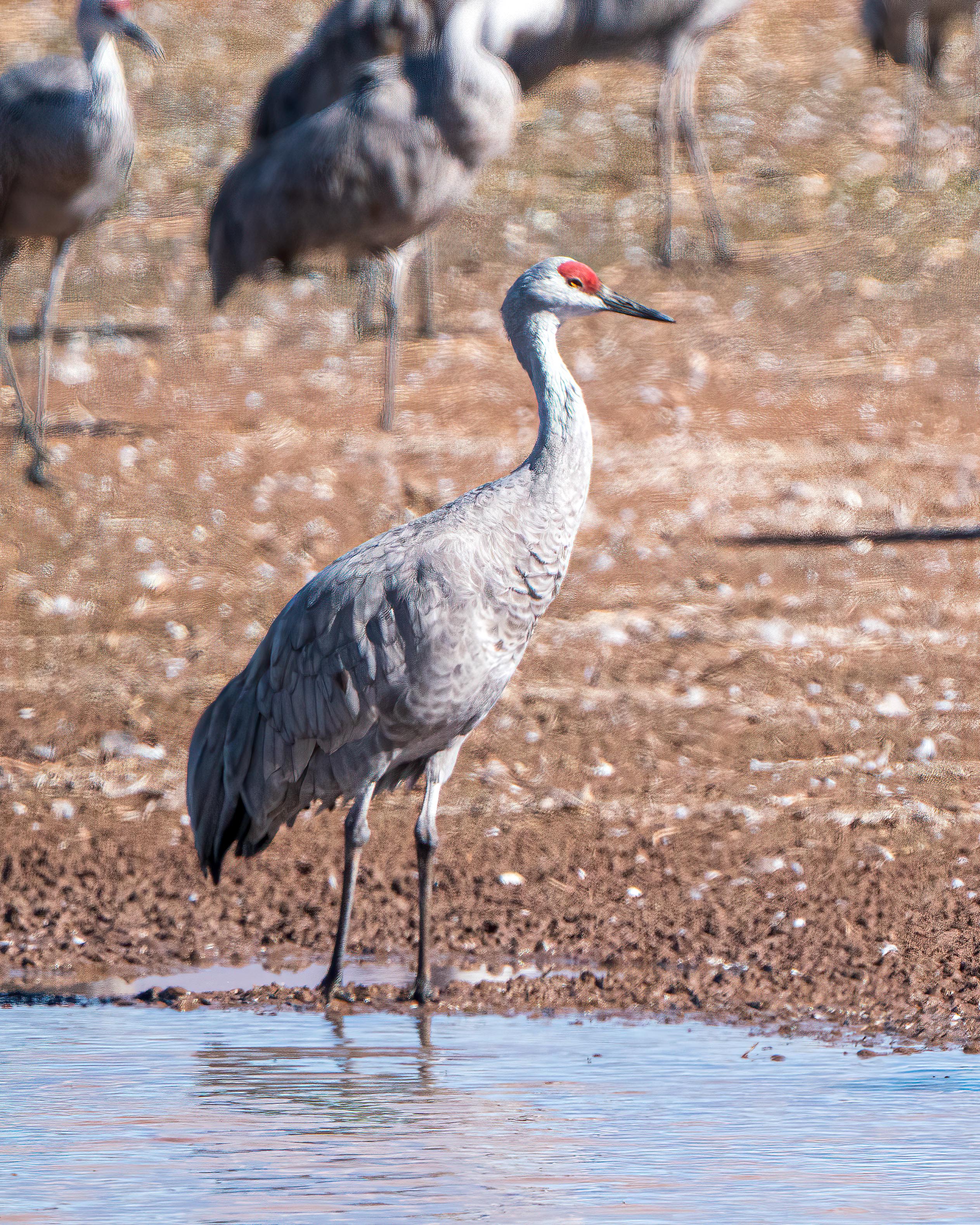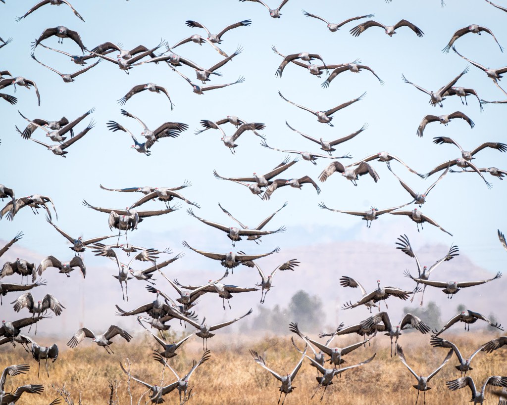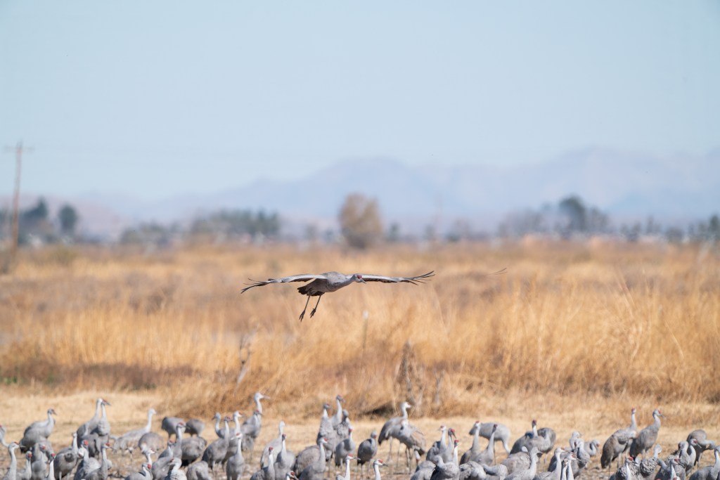 Located in southeastern Arizona, Whitewater Draw is a major roost site for Sandhill Cranes, Arizona Game and Fish Department currently manages Whitewater Draw for waterfowl, cranes, and other wetland associated birds. Each winter Whitewater Draw offers memorable sights and sounds of more than 20,000 sandhill cranes. These birds spend the night standing in Whitewater Draw’s shallow waters to evade predators, and then fly out each morning about sunrise to feed and socialize in the surrounding area. They begin returning to Whitewater Draw about 11 AM, continuing into the afternoon and evening.