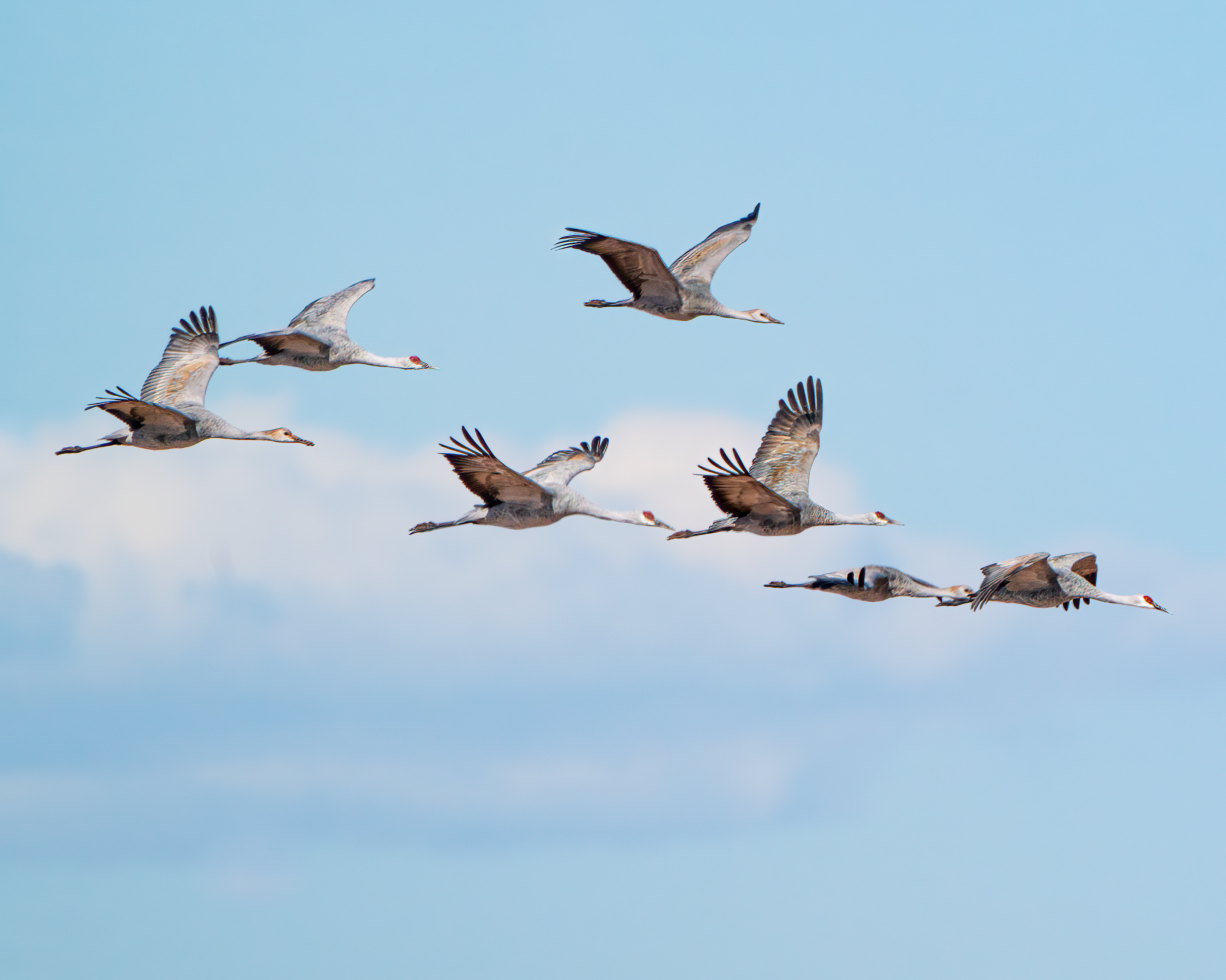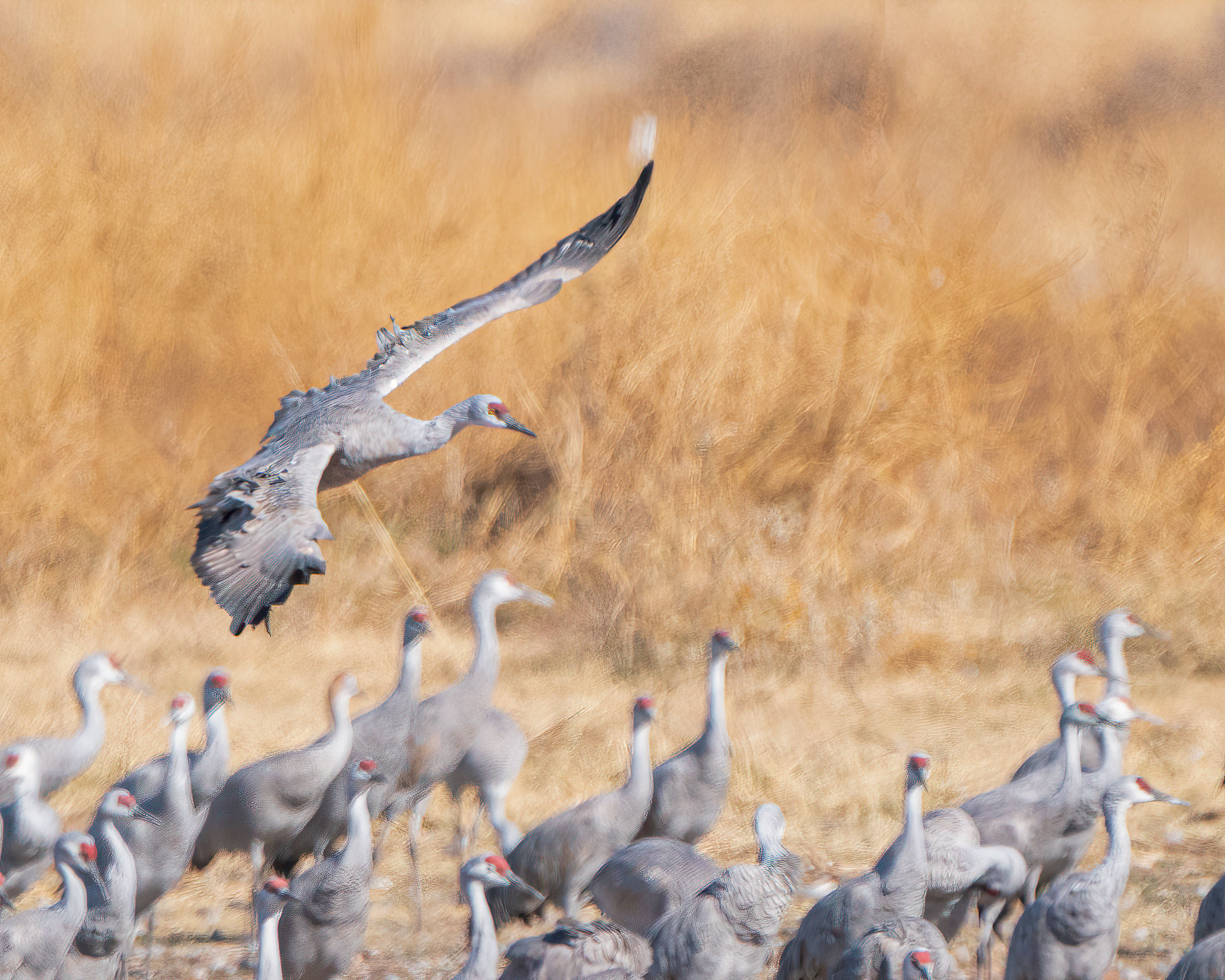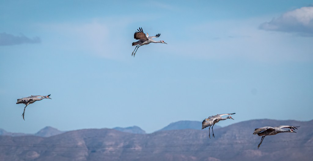 It didn’t take long to capture the amazing sights of the cranes coming in for a landing, often flying in “V” formation. And the sound was a cacophony of squeaks, cries, otherwise “obnoxious” sounds.