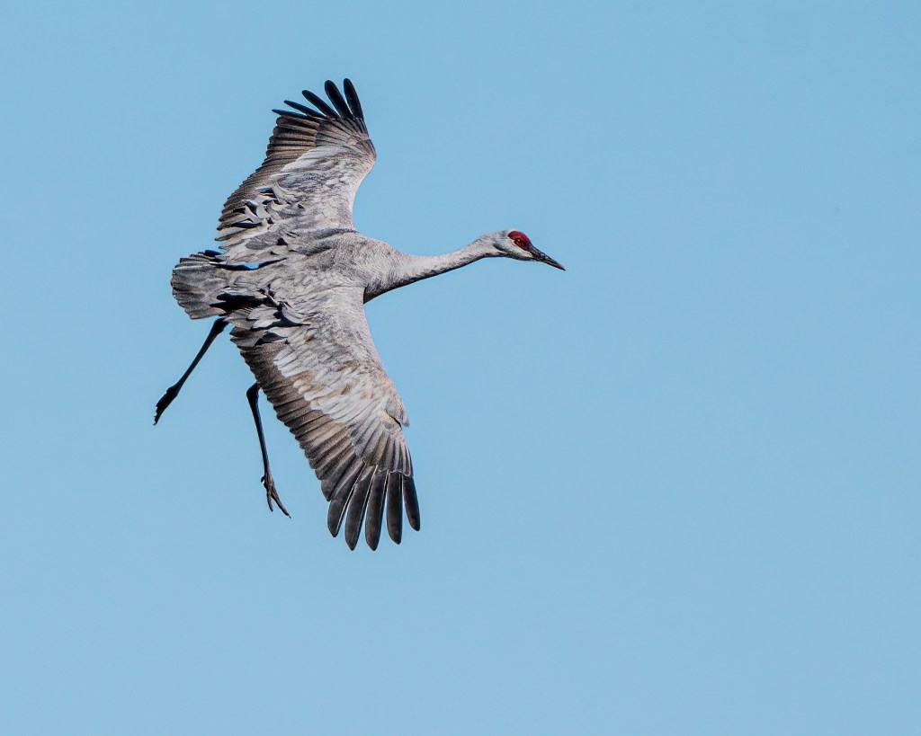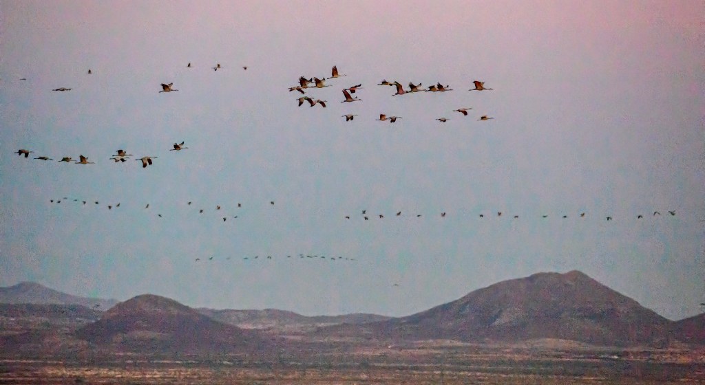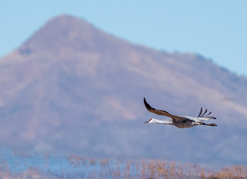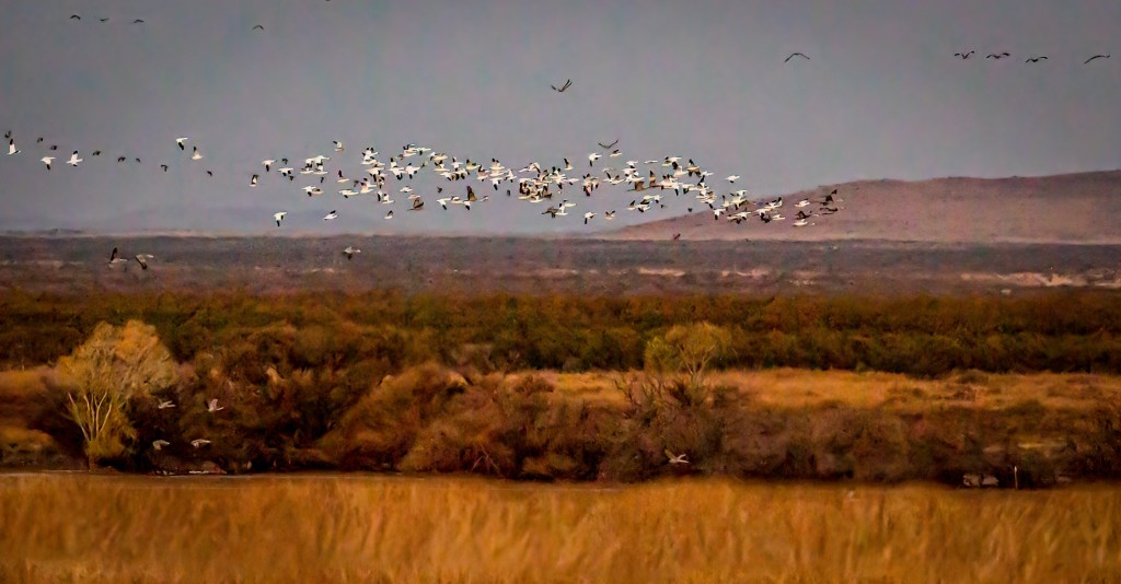 Returning to the motorhome, we had our usual breakfast of maple and brown sugar oatmeal, downloaded photographs, and began the laborious process of post processing. At about 1030, it was back to the reservoir to watch and photograph the Sandhill Cranes return to their roost area.