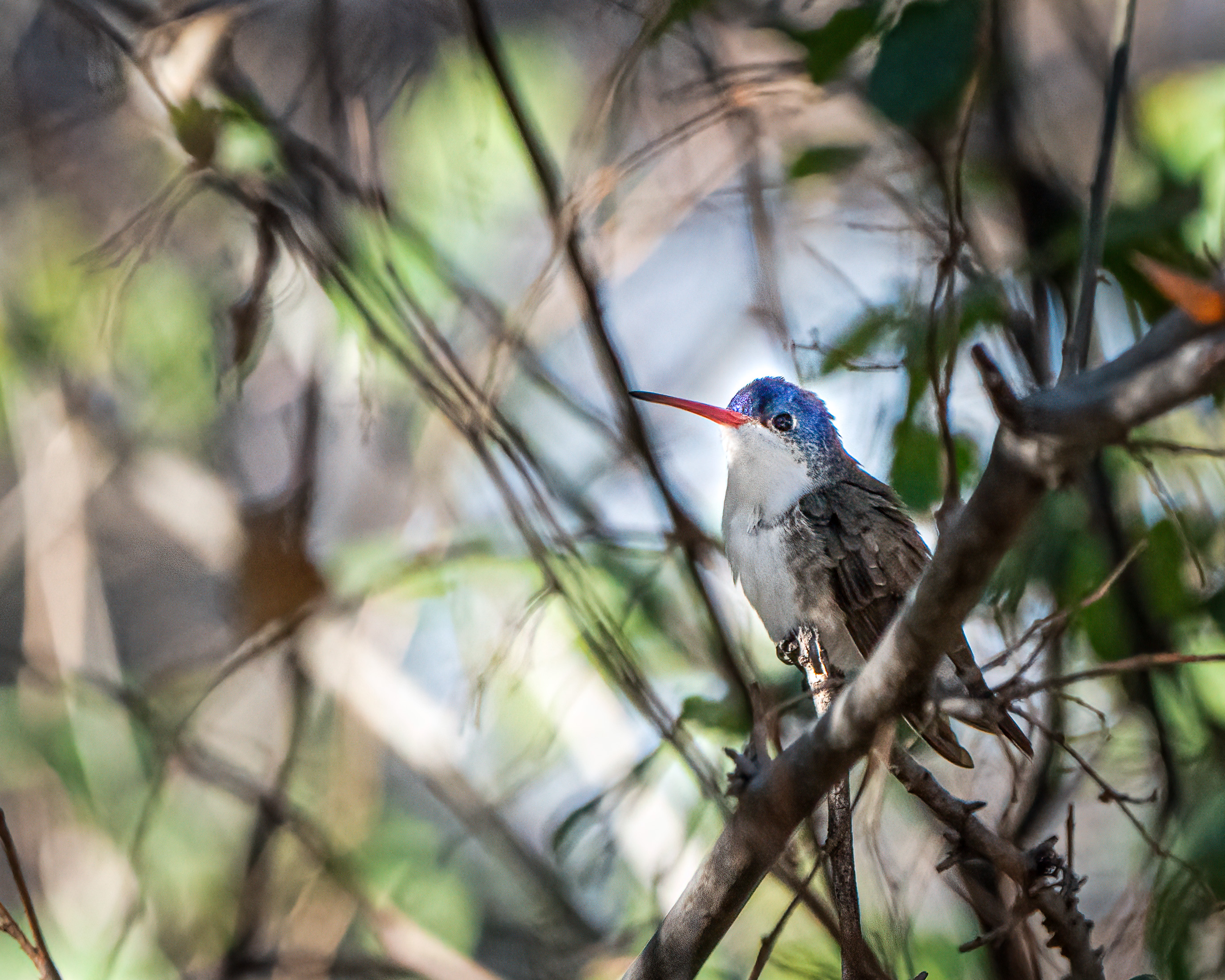The ornithologist suddenly got excited as he spotted a Rose-throated Becard high in a nearby tree. As we all tried getting a look and a photograph, it had its back to us. And then, it moved to another tree, hiding behind some dense foliage. Fortunately, it moved again, allowing a good look. Another LIFER observed and photographed. Along with the Lazuli Bunting, two LIFERS in one day will be an unforgettable experience!
