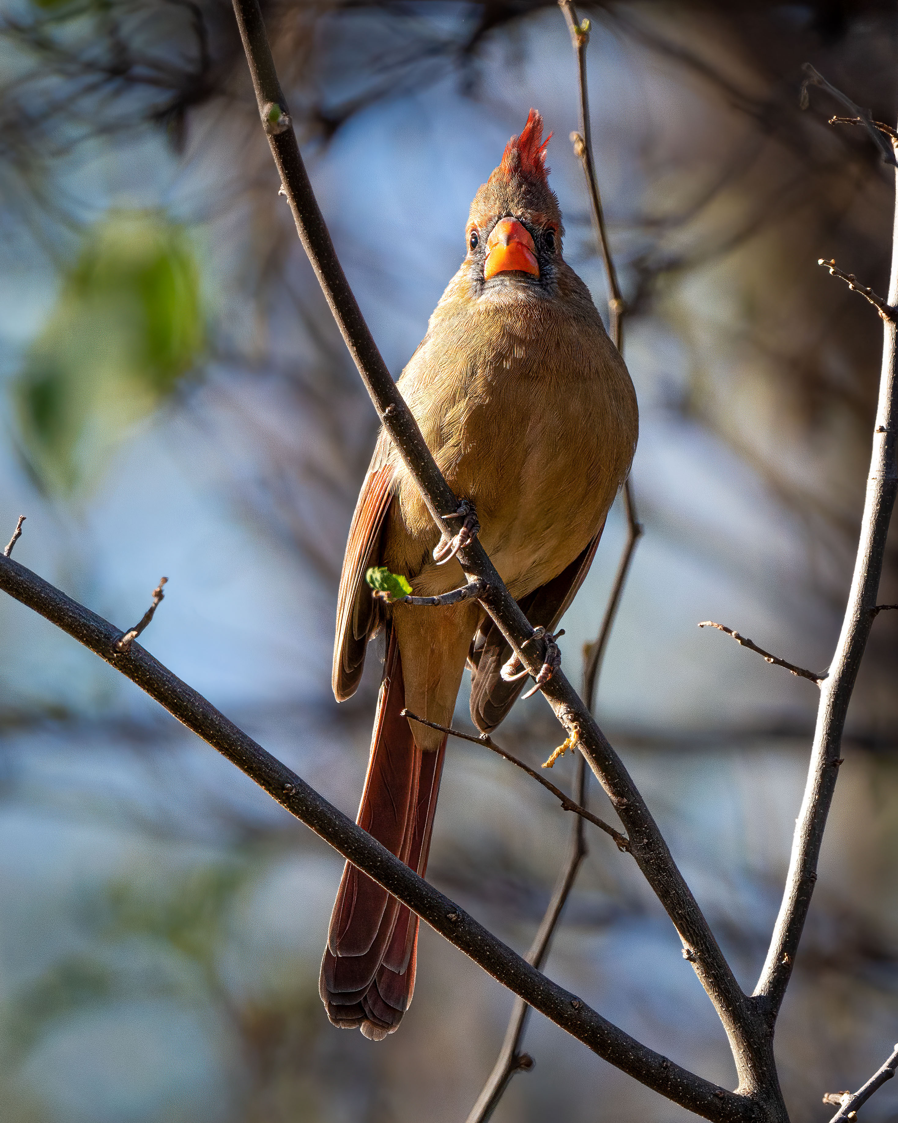 A female Northern Cardinal hung around the tree for a while, maintaining a guard over its surroundings.