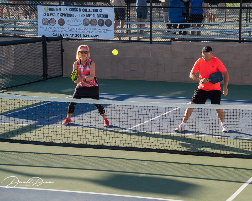 Steve Seitz and his female partner played in the 3.5 Palm group in their age bracket. Though they played well, their mixed double team did not medal.