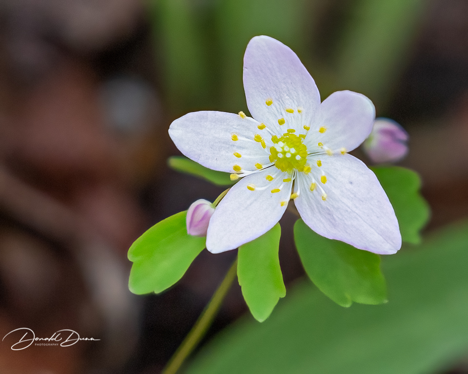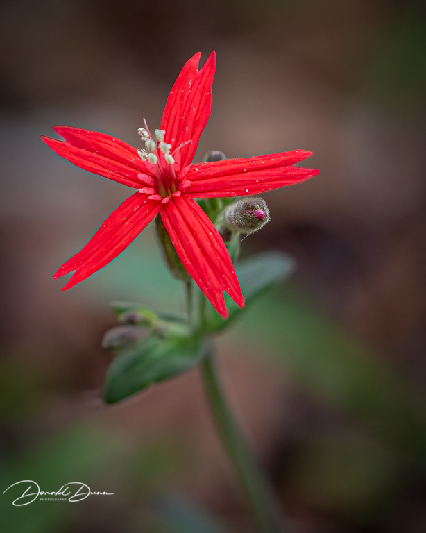 Kay played golf Wednesday morning, and I forced myself to walk Cedar Creek Trail in Hot Springs Village to photograph a few flowers. Unfortunately, Kay played golf at the Coronado Golf Course on rain-soaked fairways, making for a “sloppy” game. I had been waiting for the perfect day to take photographs since returning from Arizona in mid-March. And, of course, the perfect day doesn’t come often; we have been beset with wind, rain, and/or cold since returning. Today was no exception as was windy and overcast—but overcast is good. My target bloom today was specifically the Trout Lily, but I had waited a bit too late. However, upon entering the trail, a Fire Pink stood to the side beckoning for a photograph. It is one of my favorites.