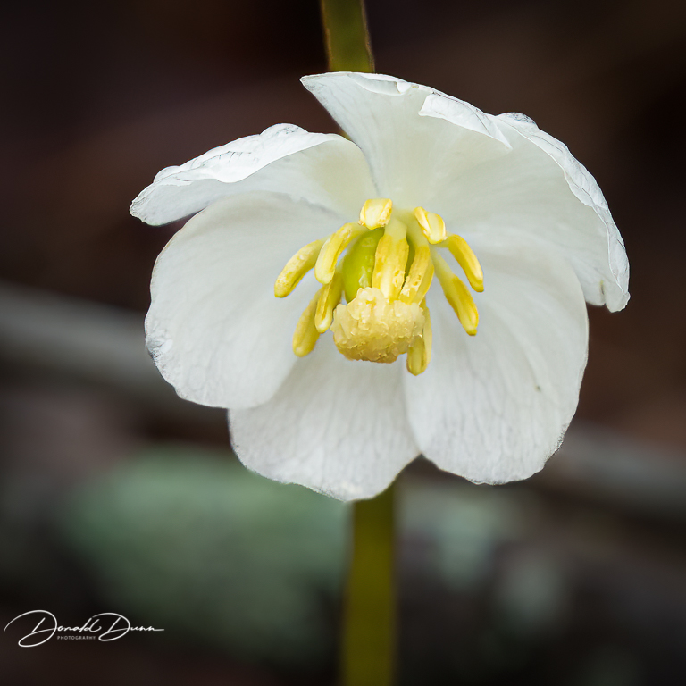 The forest floor was carpeted with Mayapple plants, and upon close examination, a bloom exposed itself, facing the good earth rather than the overcast skies. I couldn’t refuse.